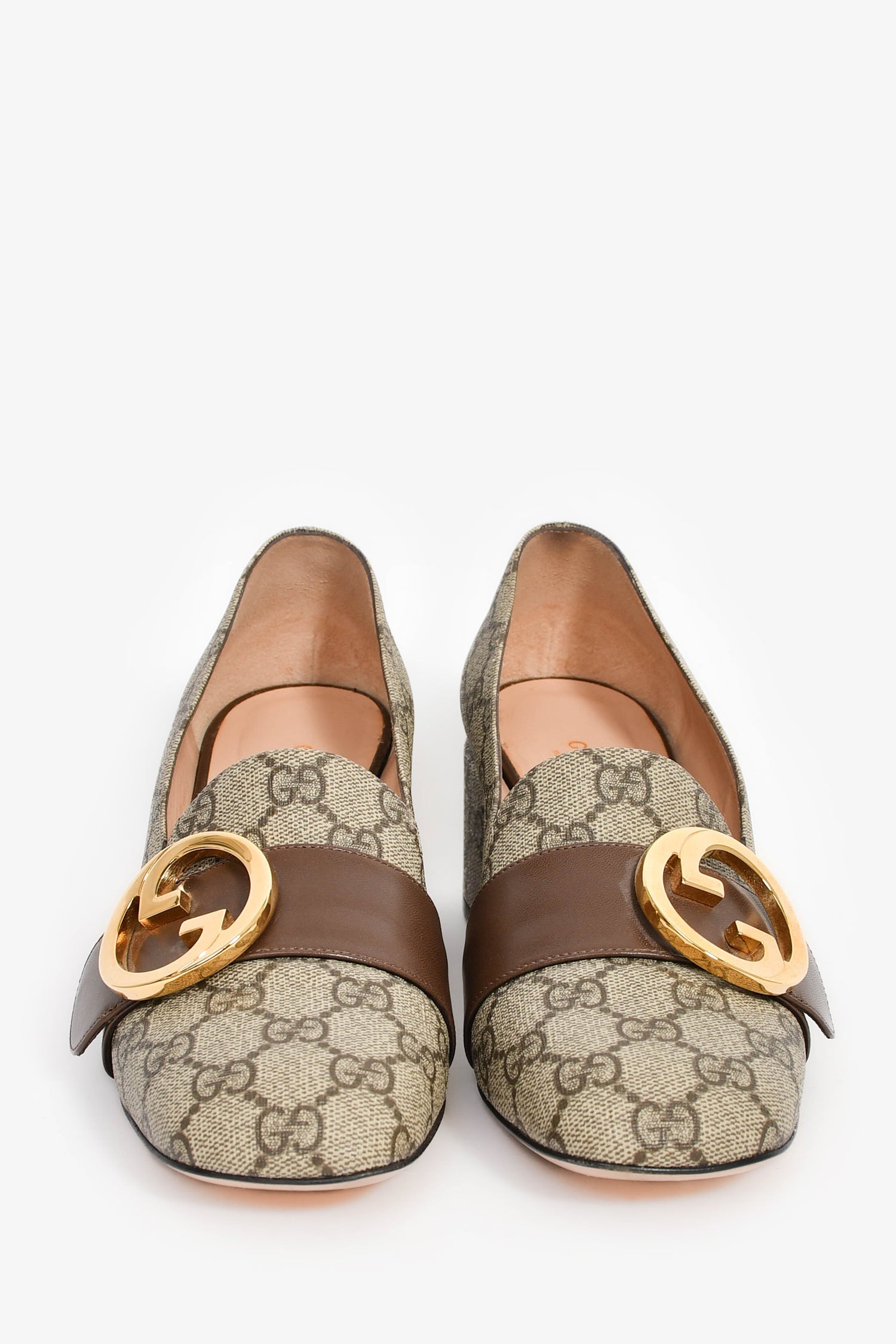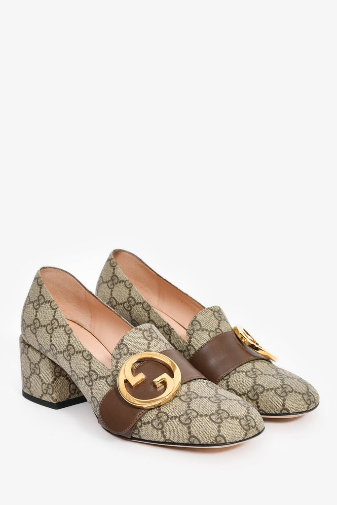 Gucci Brown 'GG' Monogram Pumps with Leather Buckle Size 38