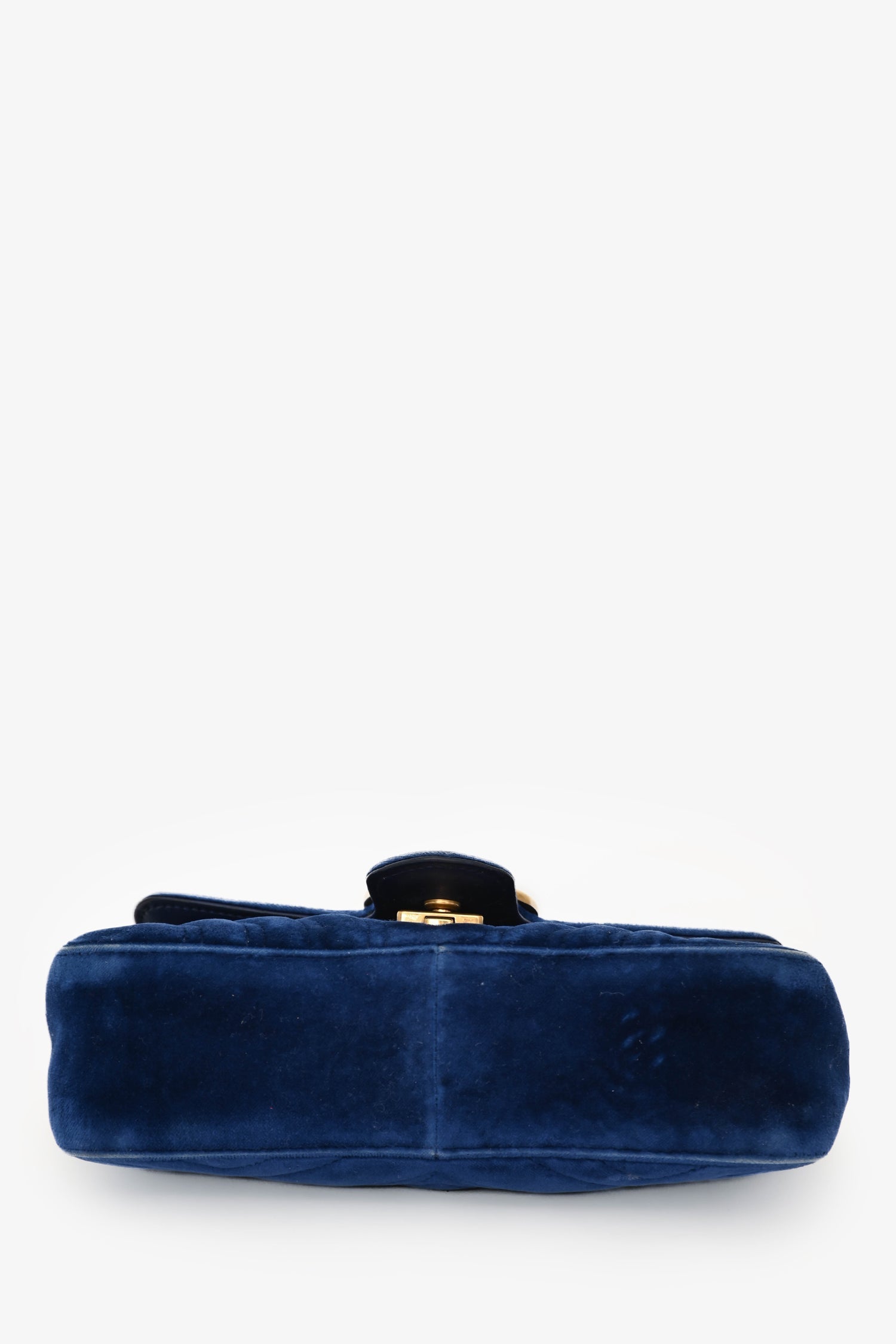 Gucci Cobalt Blue Velvet Mini Marmont Shoulder Bag