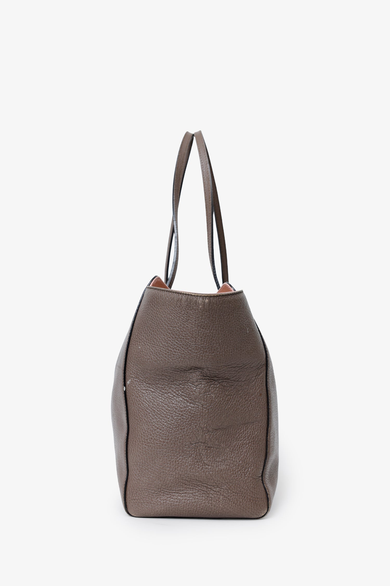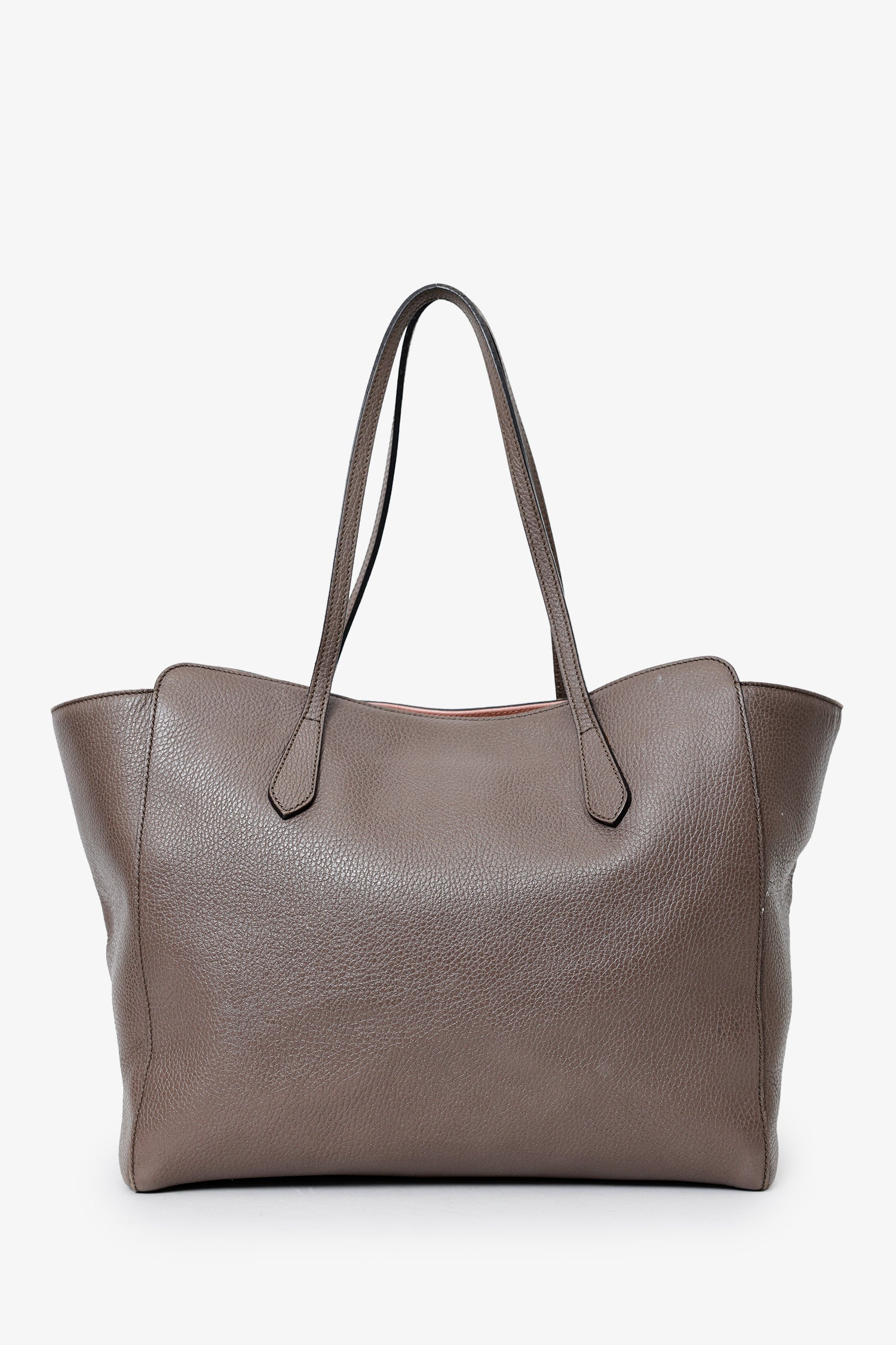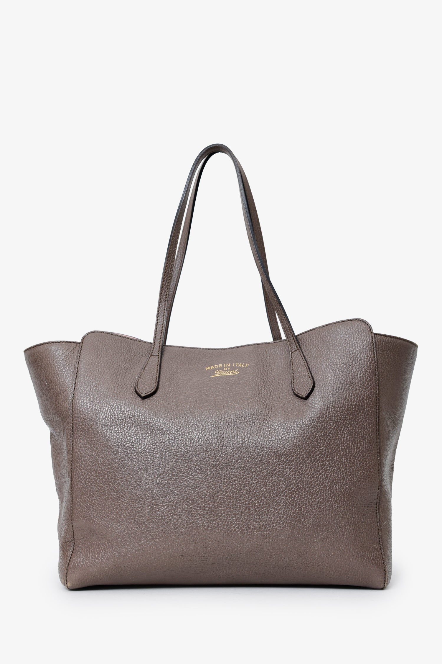 Gucci Grey Leather Medium 'Swing Tote'. Interior front fold-over flap with magnetic button closure. Twin shoulder straps. Lined interior. 3 interior pockets; 2 front wall slip pockets and 1 rear wall zip closure pocket.