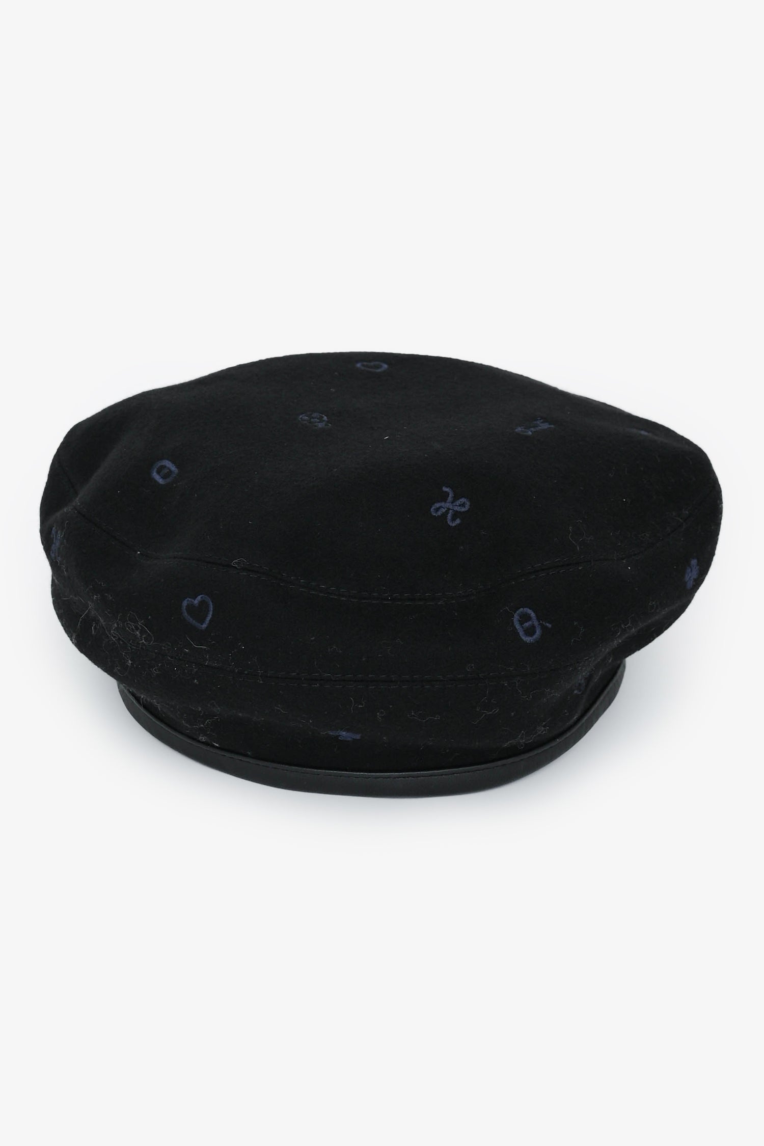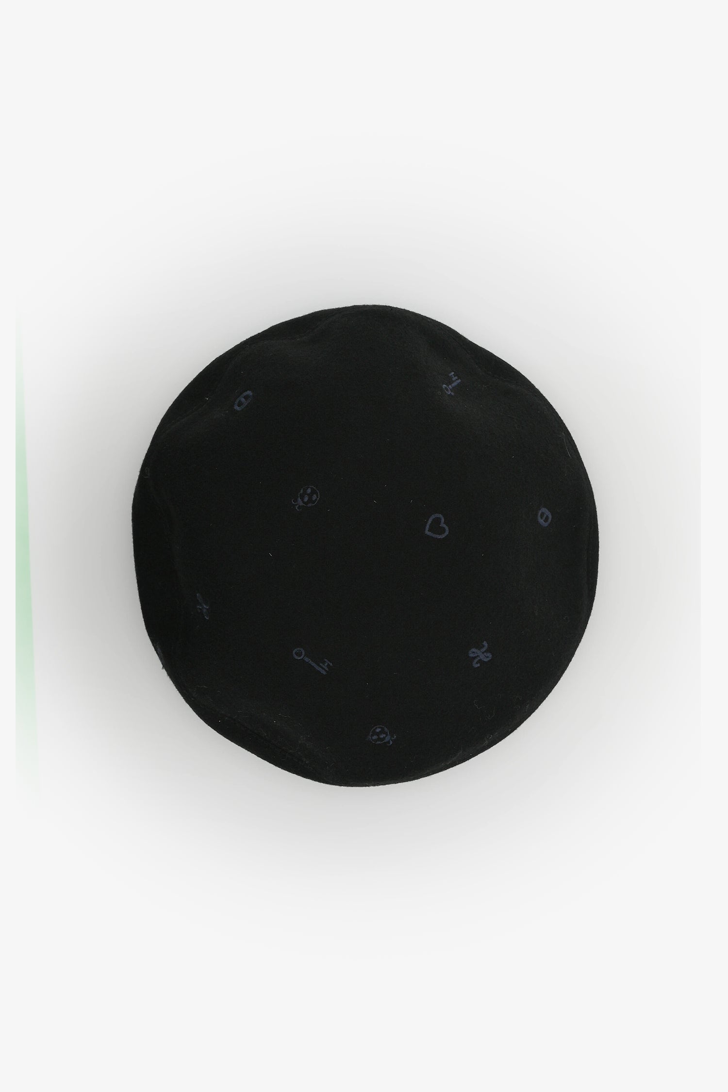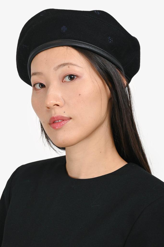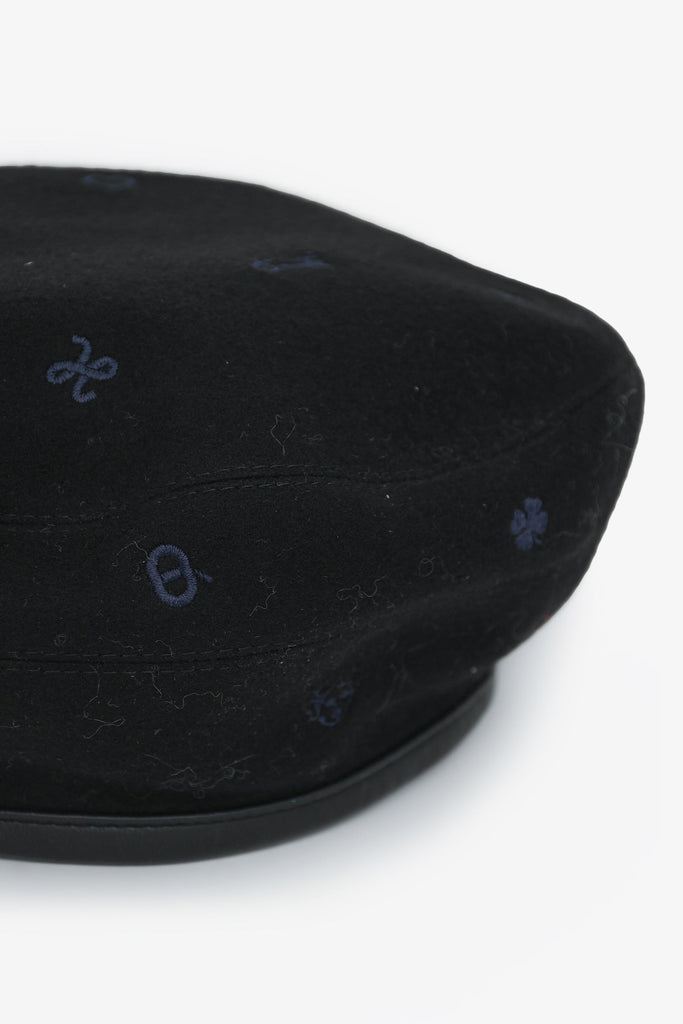 Hermès Black Cashmere Embroidered Patterned Beret Size 57