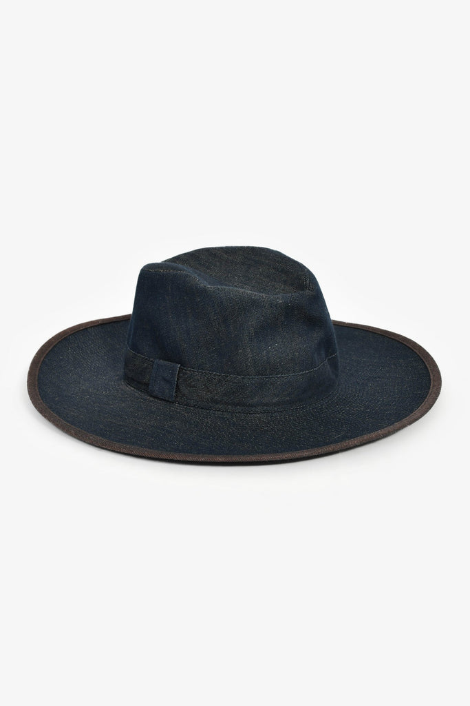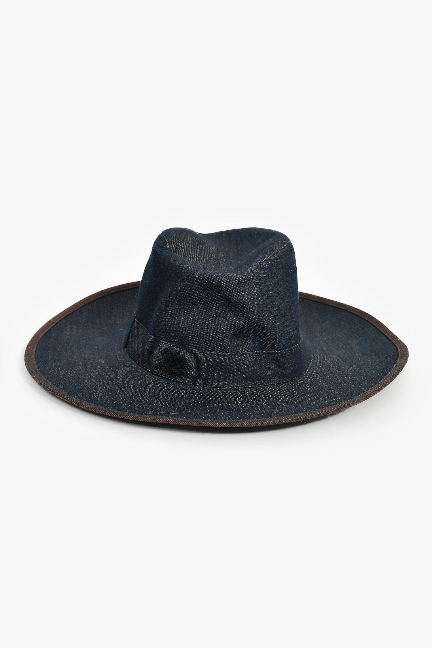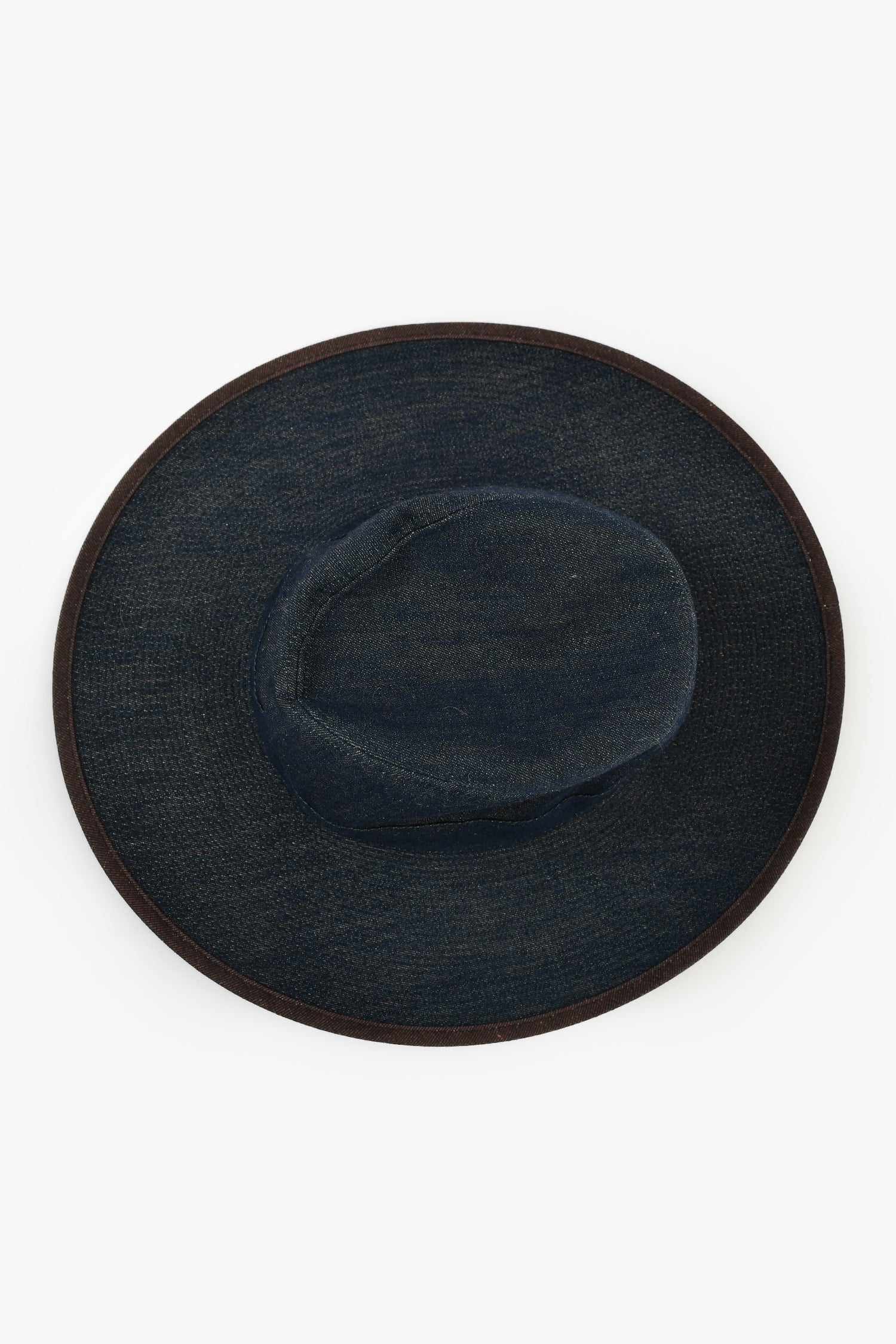 Hermes Blue Denim Wide Brim Hat. Slip-on. Tonal stitching.