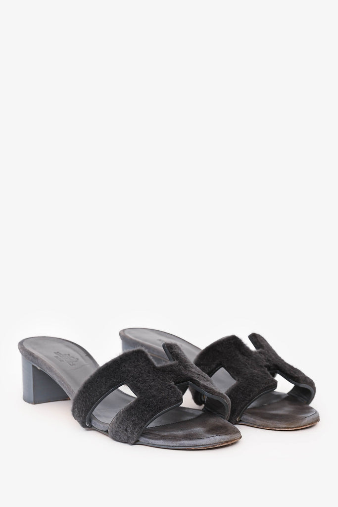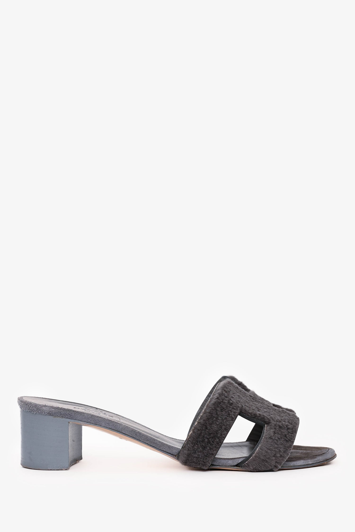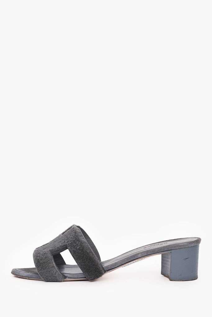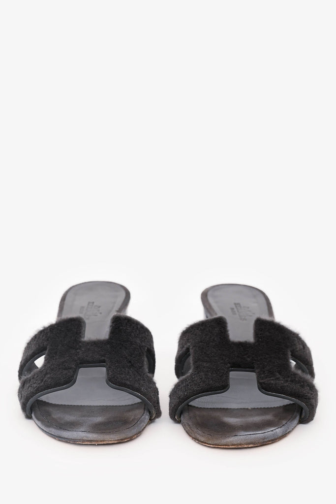 Hermès Grey Leather/Shaved Mink Fur Oasis Sandals Size 36