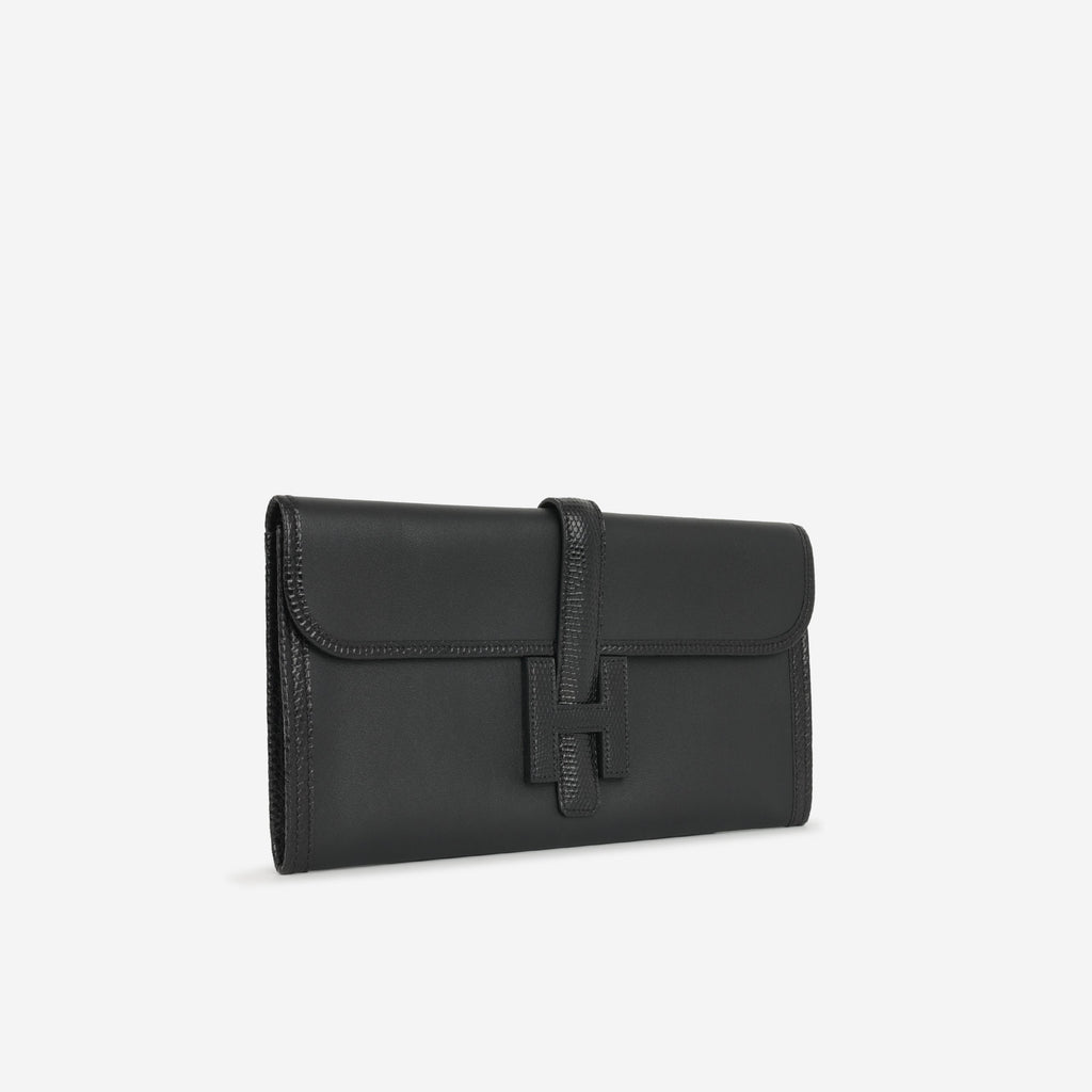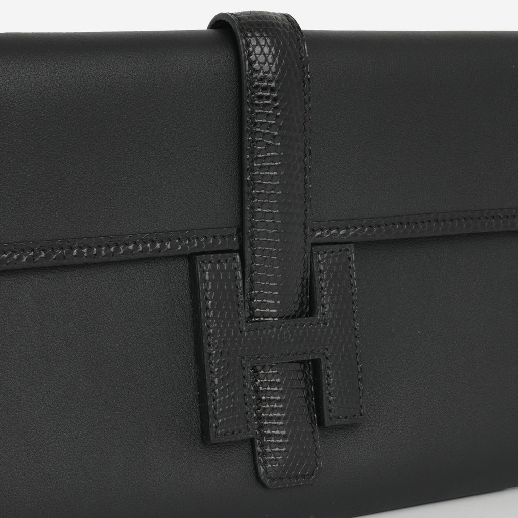 Hermès Jige Clutch 29 - Noir Swift / Noir Varanus Shiny Niloticus Lizard