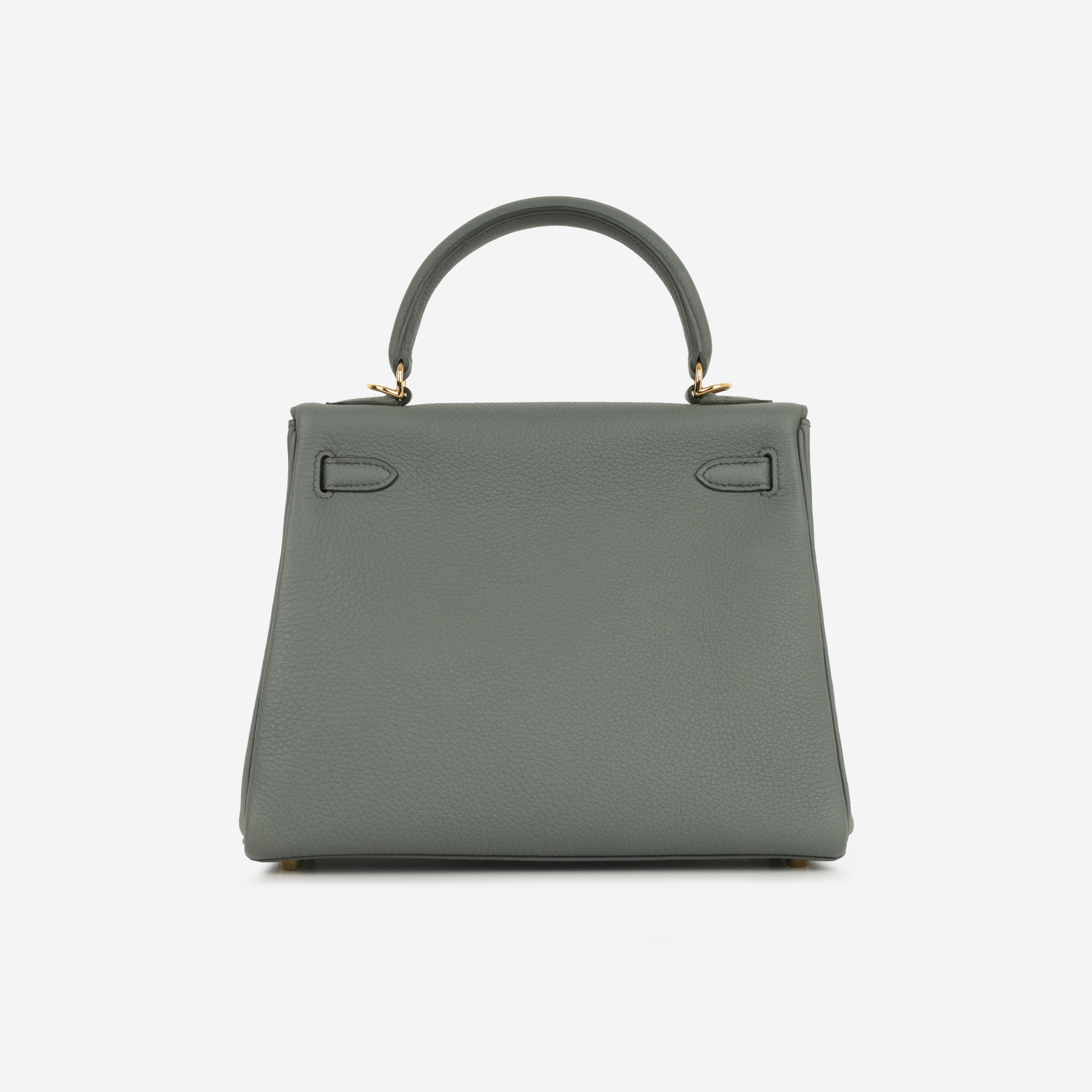 Elegant, structured, and unmistakably timeless, the Hermès Kelly 25 in Vert Amande Togo leather is the epitome of sophisticated luxury. This exquisite piece features the coveted Vert Amande - a soft, muted green hue that adds a subtle pop of colour while remaining versatile and refined.