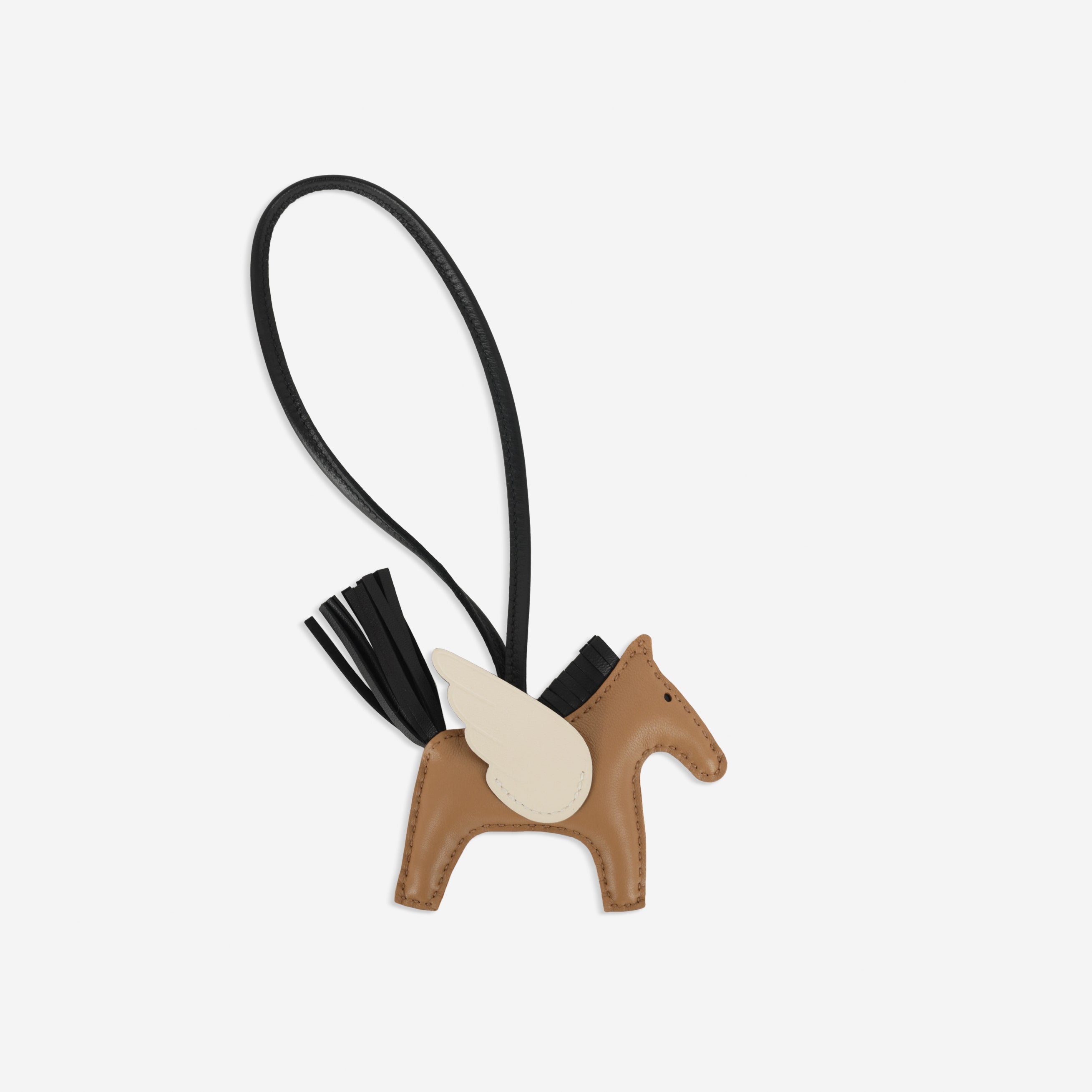 Add a touch of playful luxury to your Hermès collection with the Hermès Rodeo Pegase PM in a striking Chai, Noir, and Craie Agneau leather combination. Inspired by equestrian motifs, this charming accessory infuses handbags, keys, or everyday items with whimsical elegance and a pop of colour.