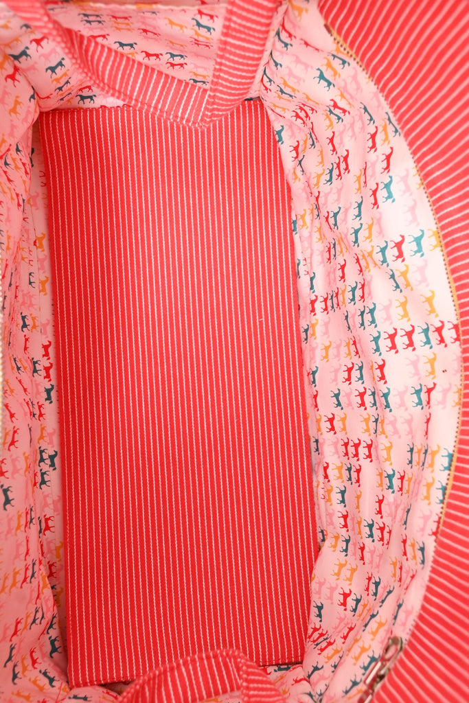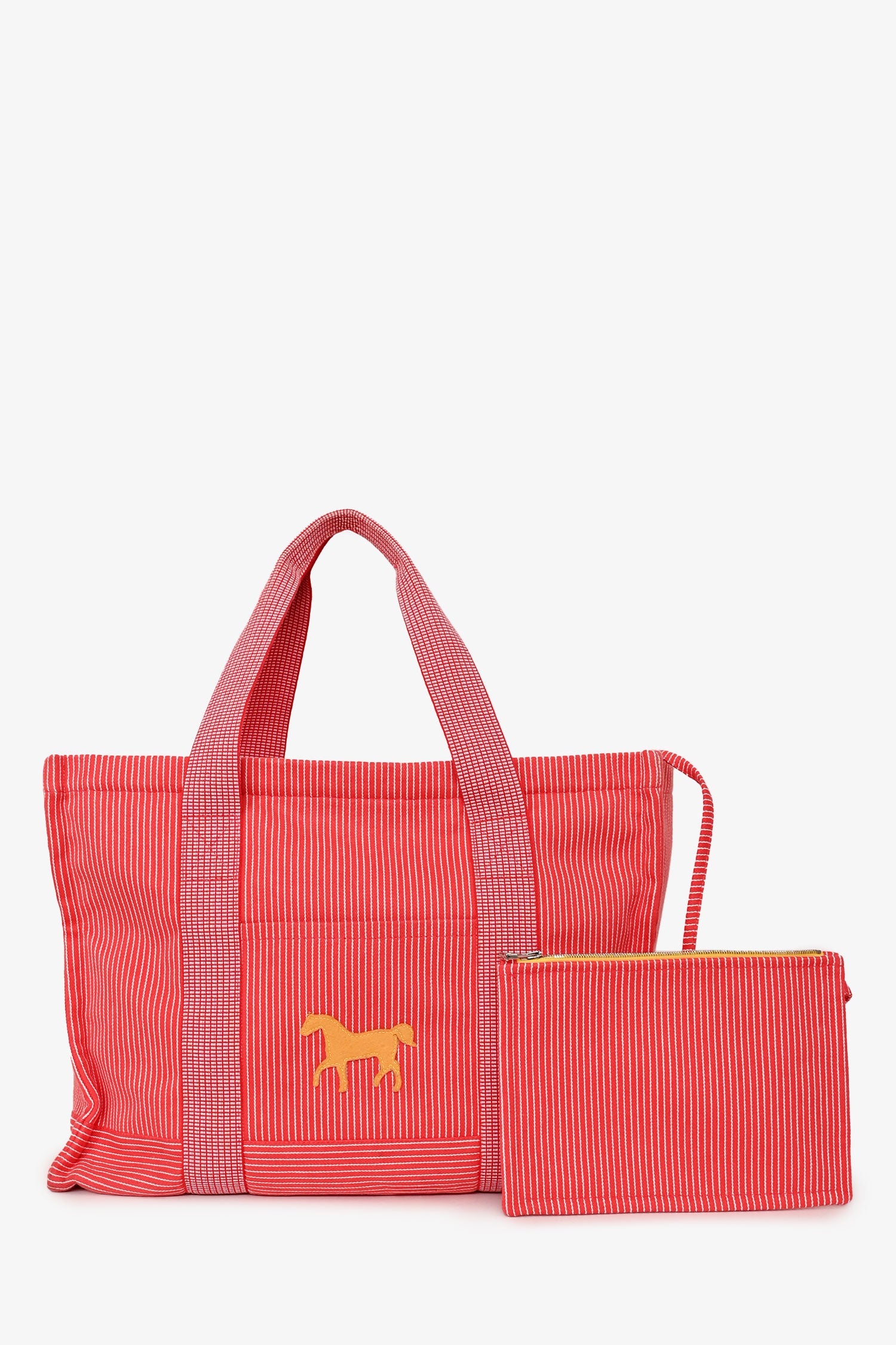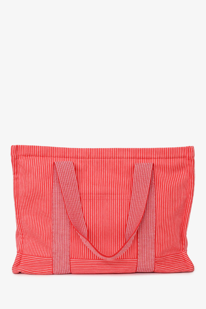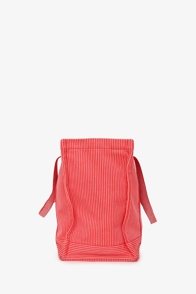 Hermès Red/White Striped Vavalcolor Nappy Bag. 2 flat straps. Concealed zipped closure. Attached zipped pouch. Lined interior. Silver-tone hardware. Tonal stitching.