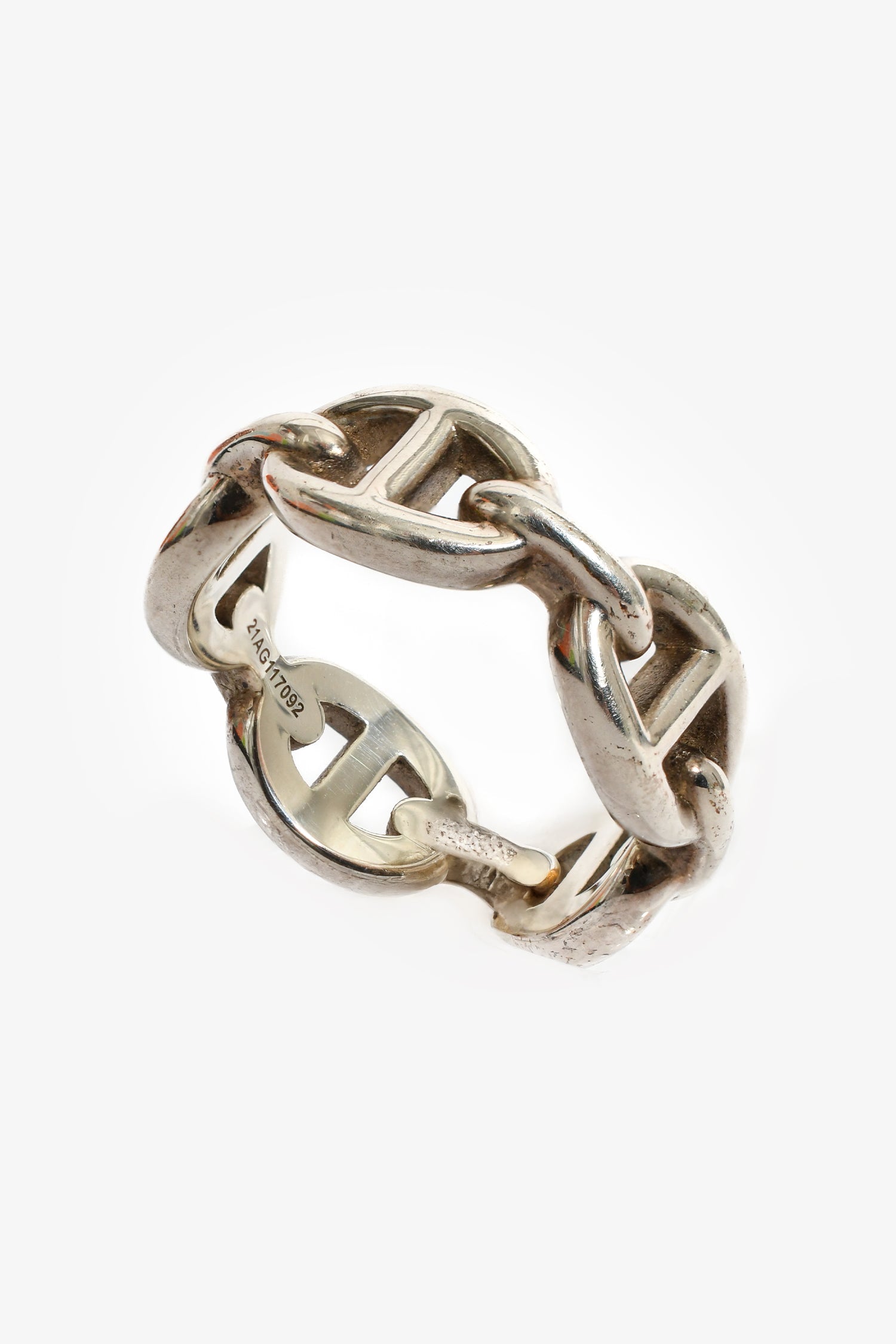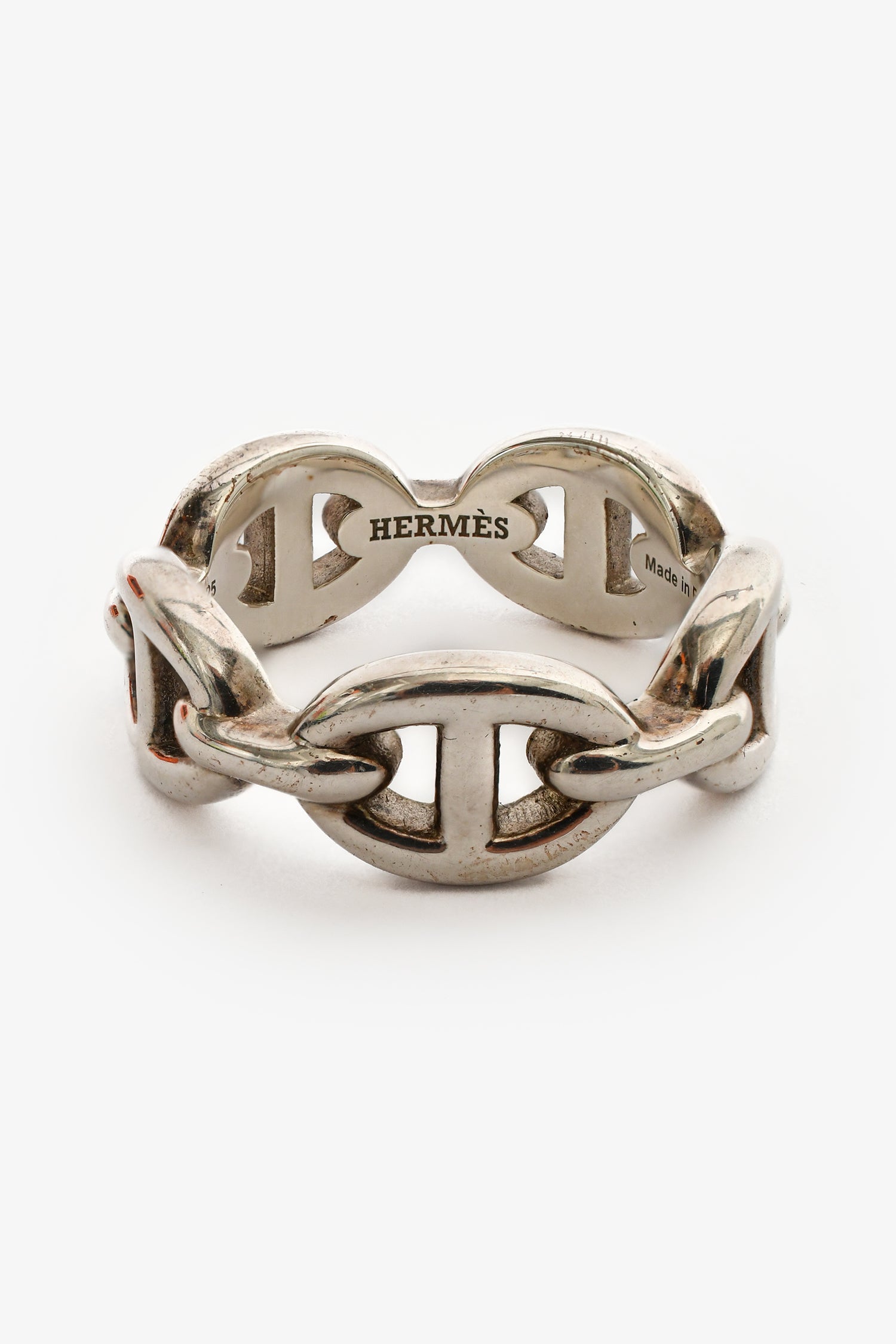 Hermès Sterling Silver Chaine D'ancre Enchainee Small Model Ring Size 49