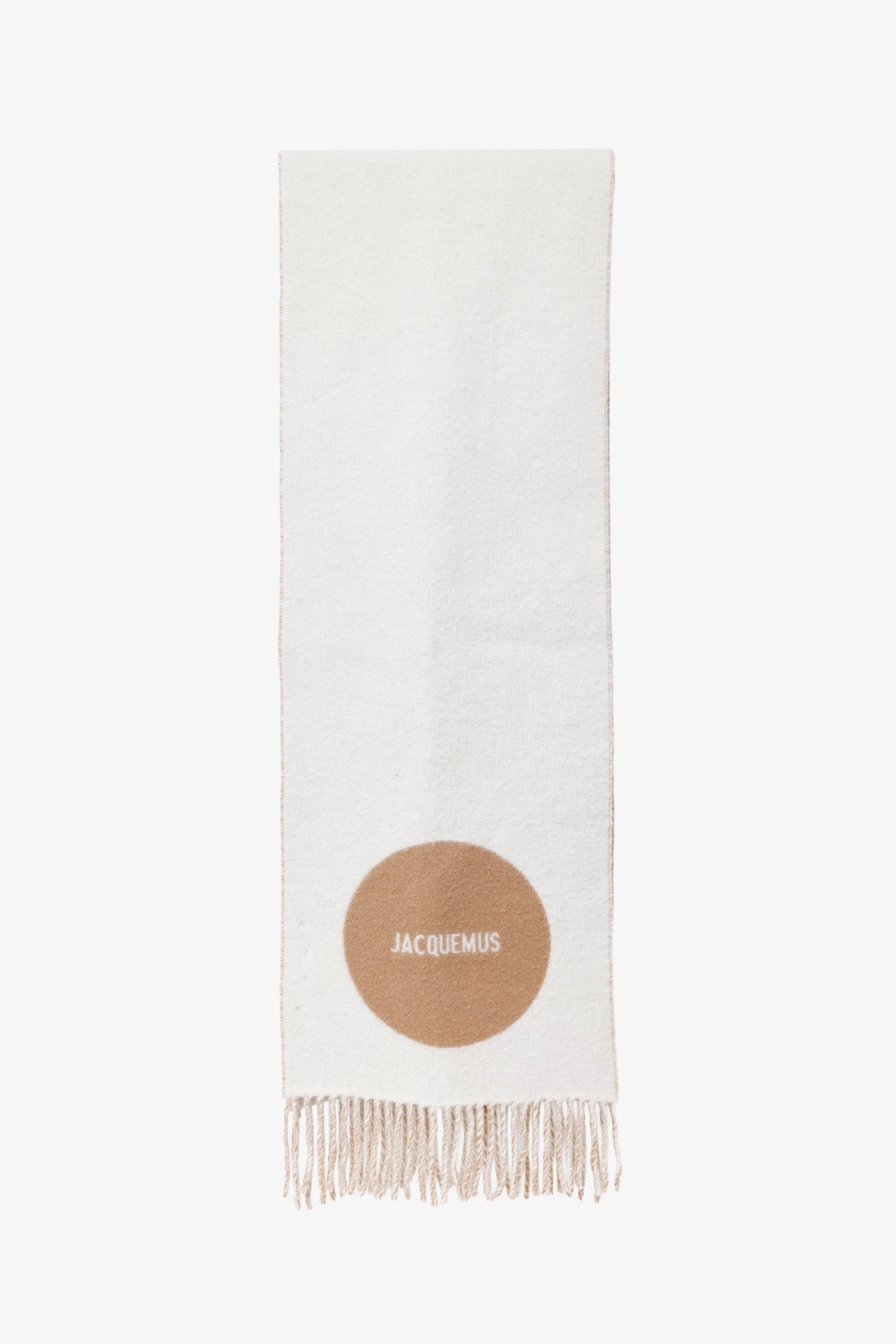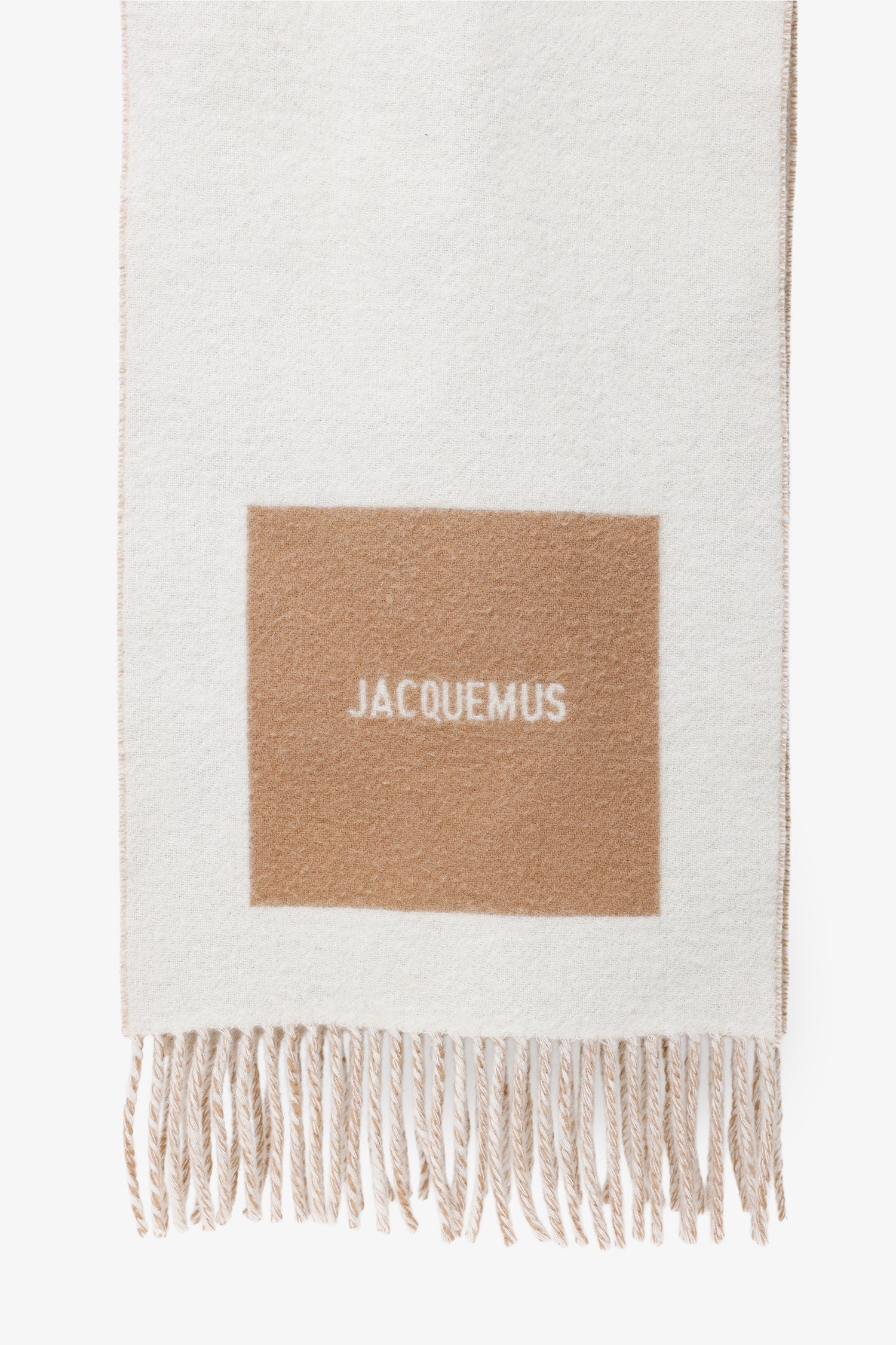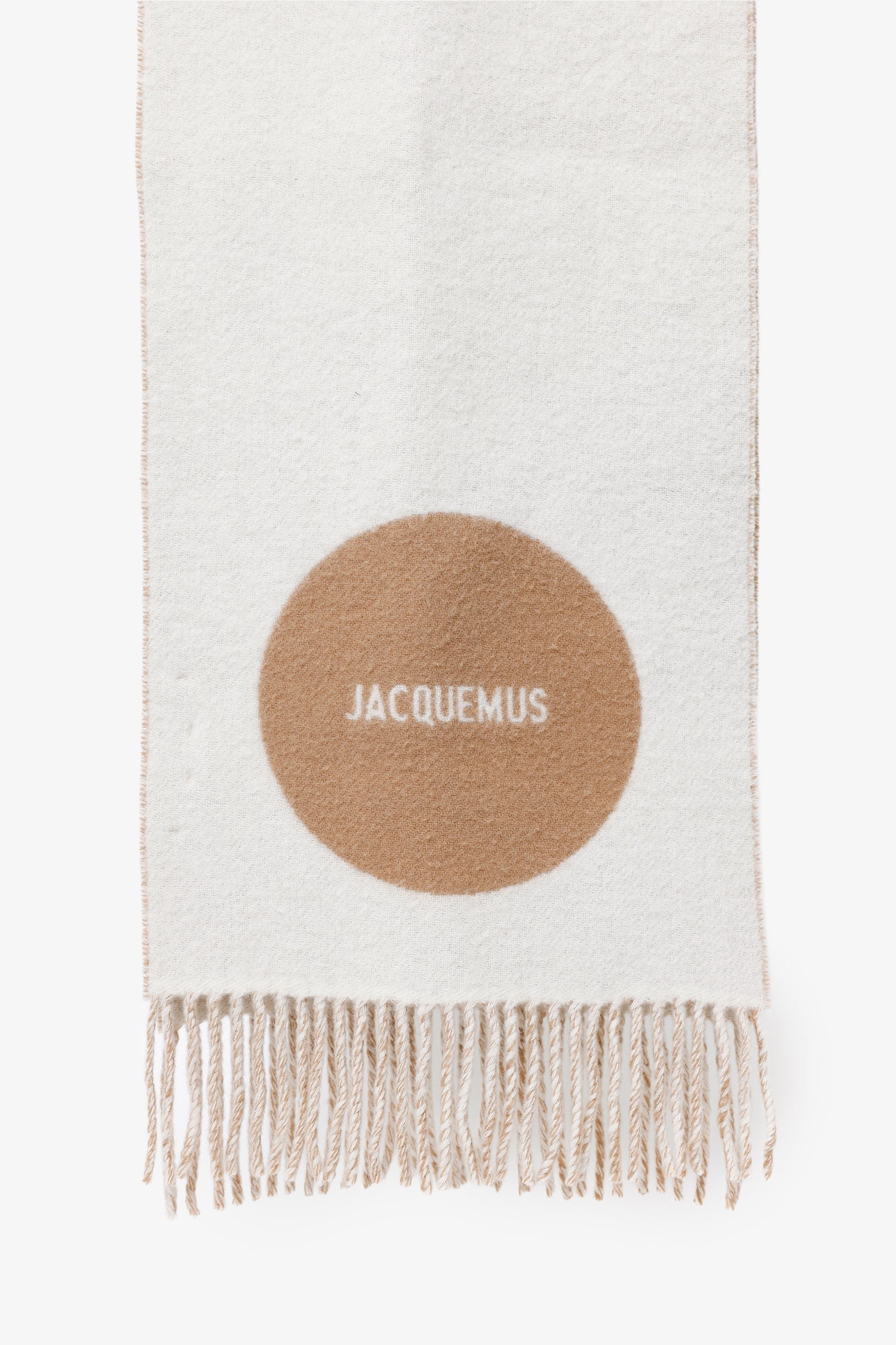 Jacquemus White/Brown Wool L'Echarpe Rond Carre Scarf
