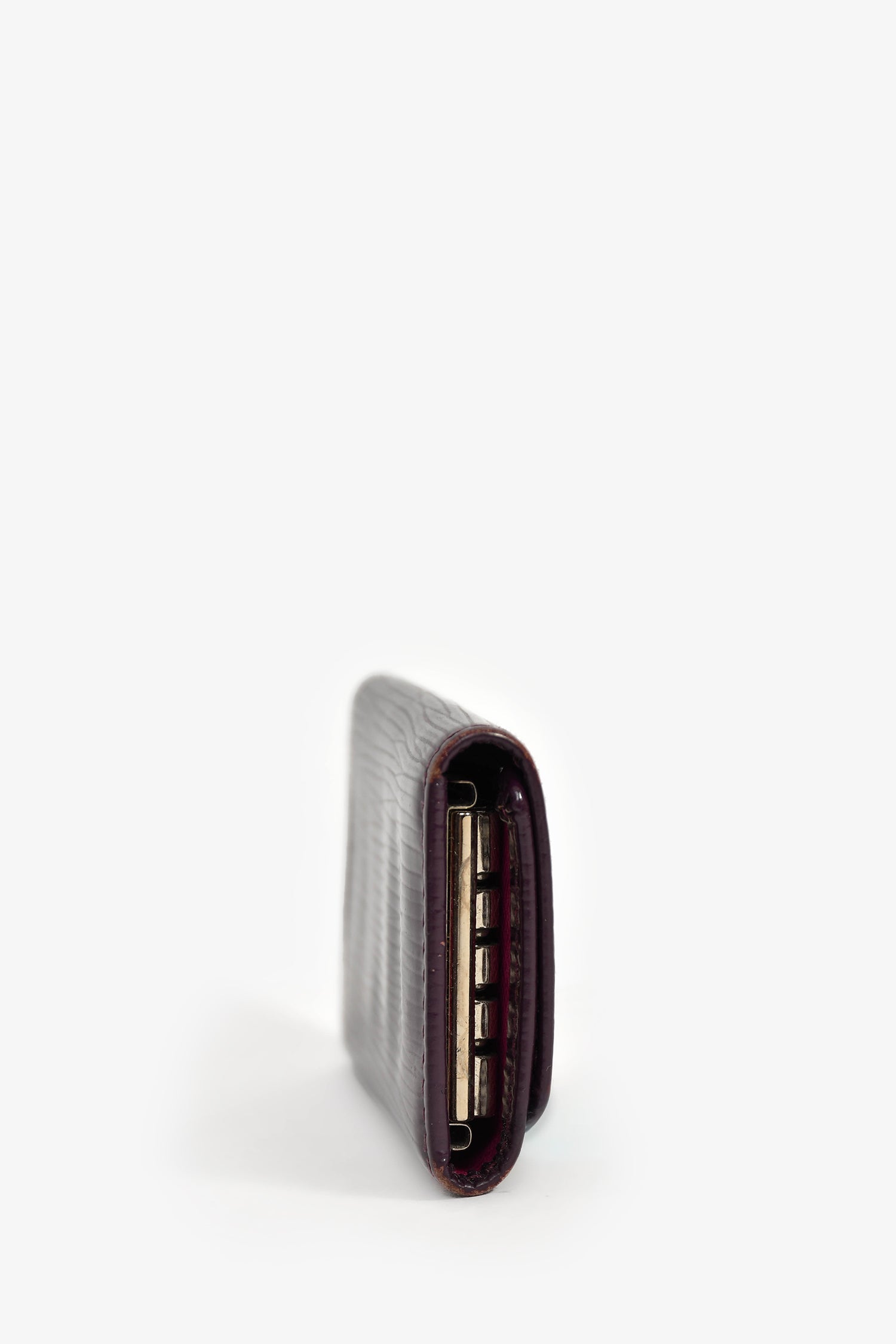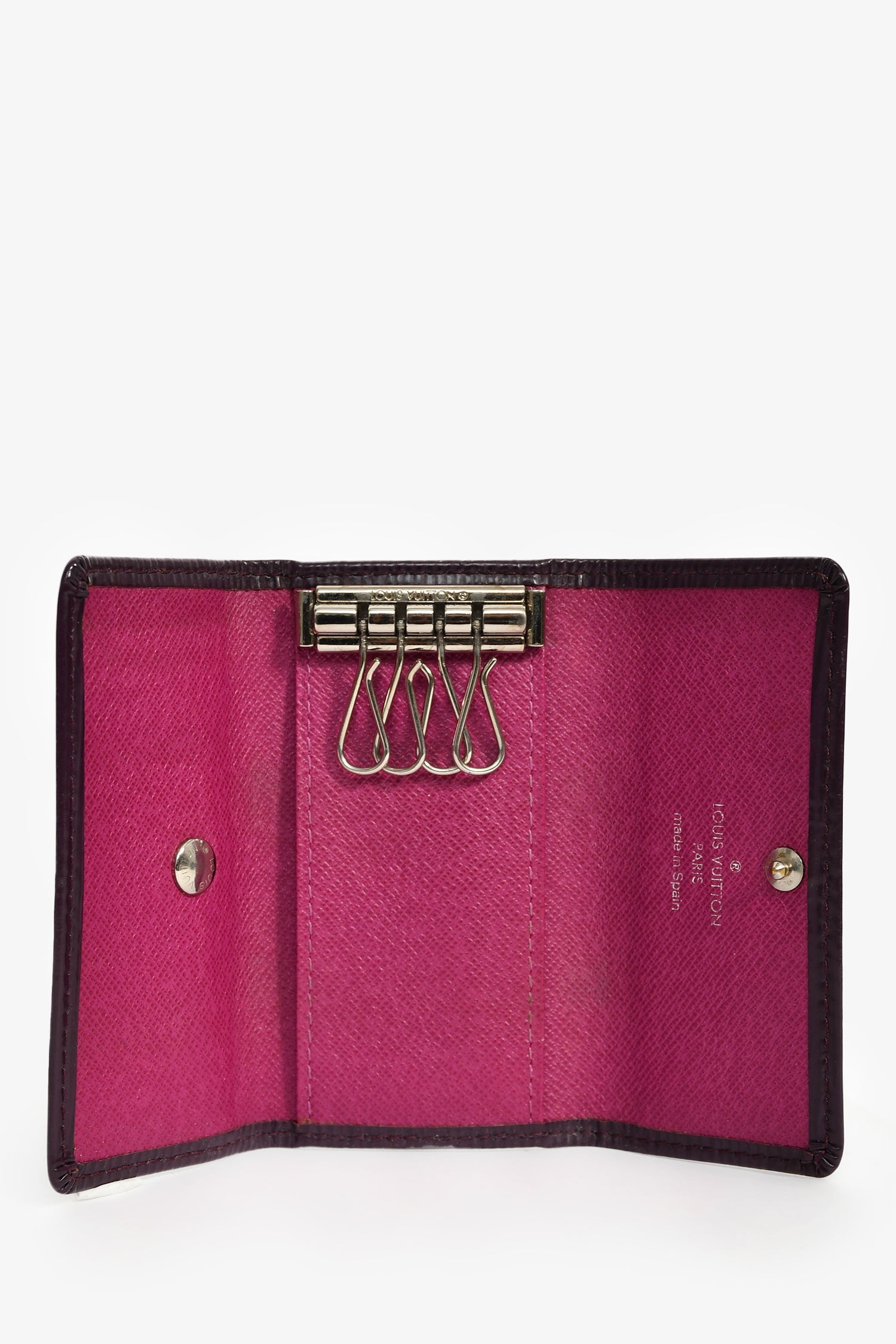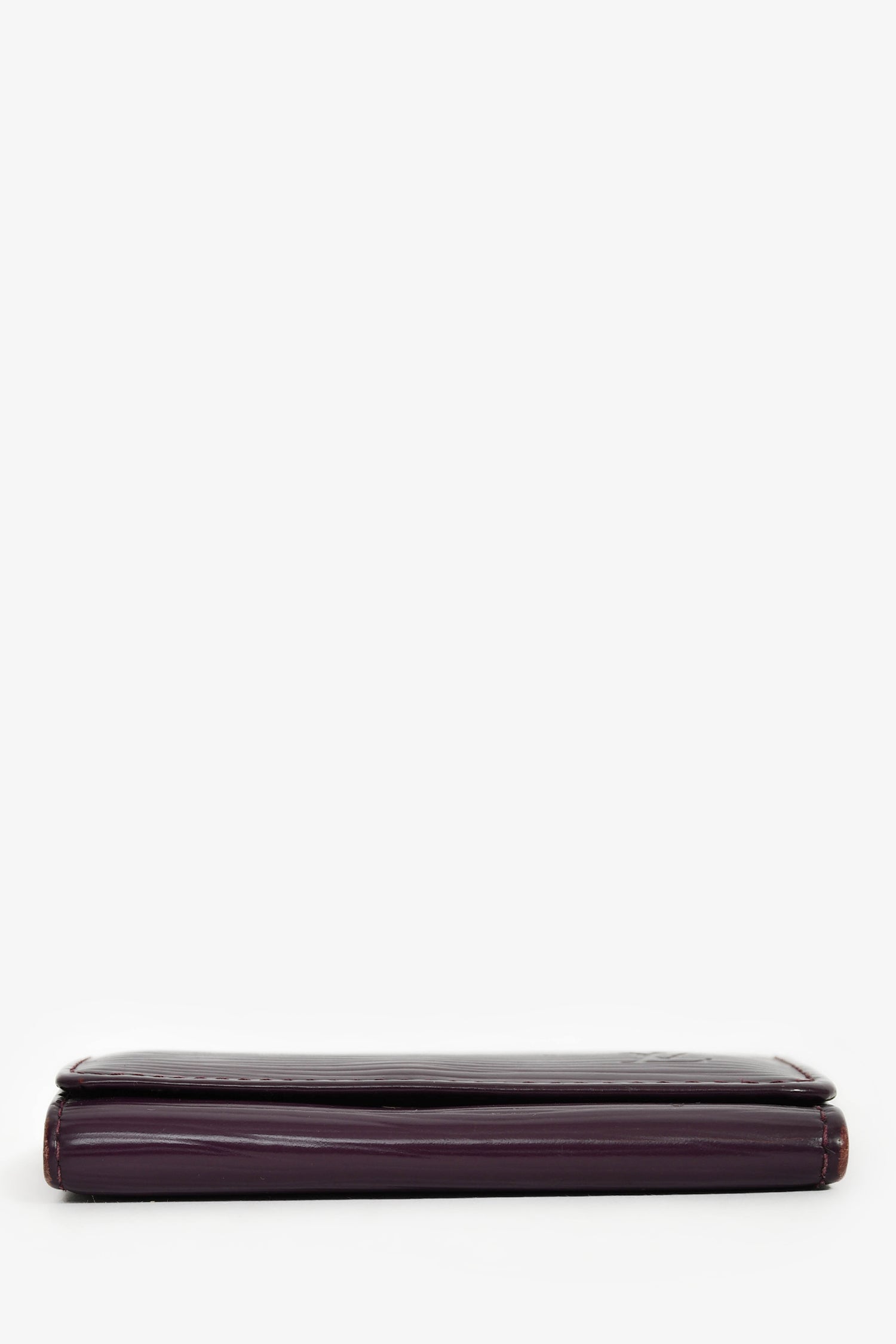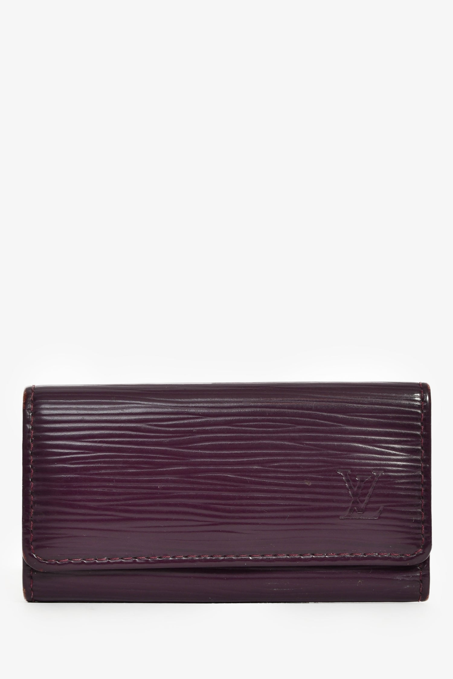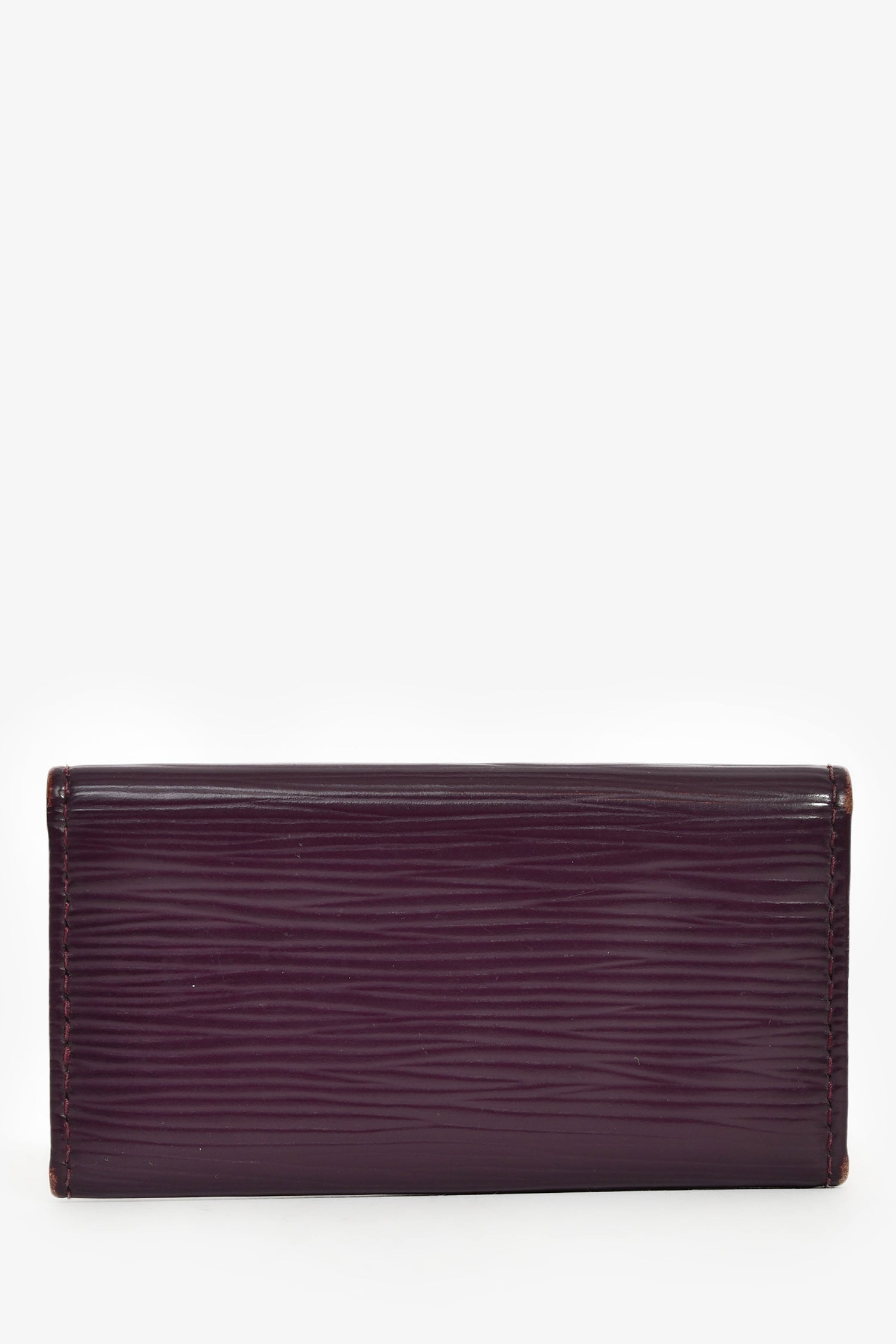 Louis Vuitton 2007 Violet Epi Leather 4 Key Case. Fold-over flap with a snap closure. 4 interior key holders. Lined leather interior. Silver-tone hardware. Tonal stitching.