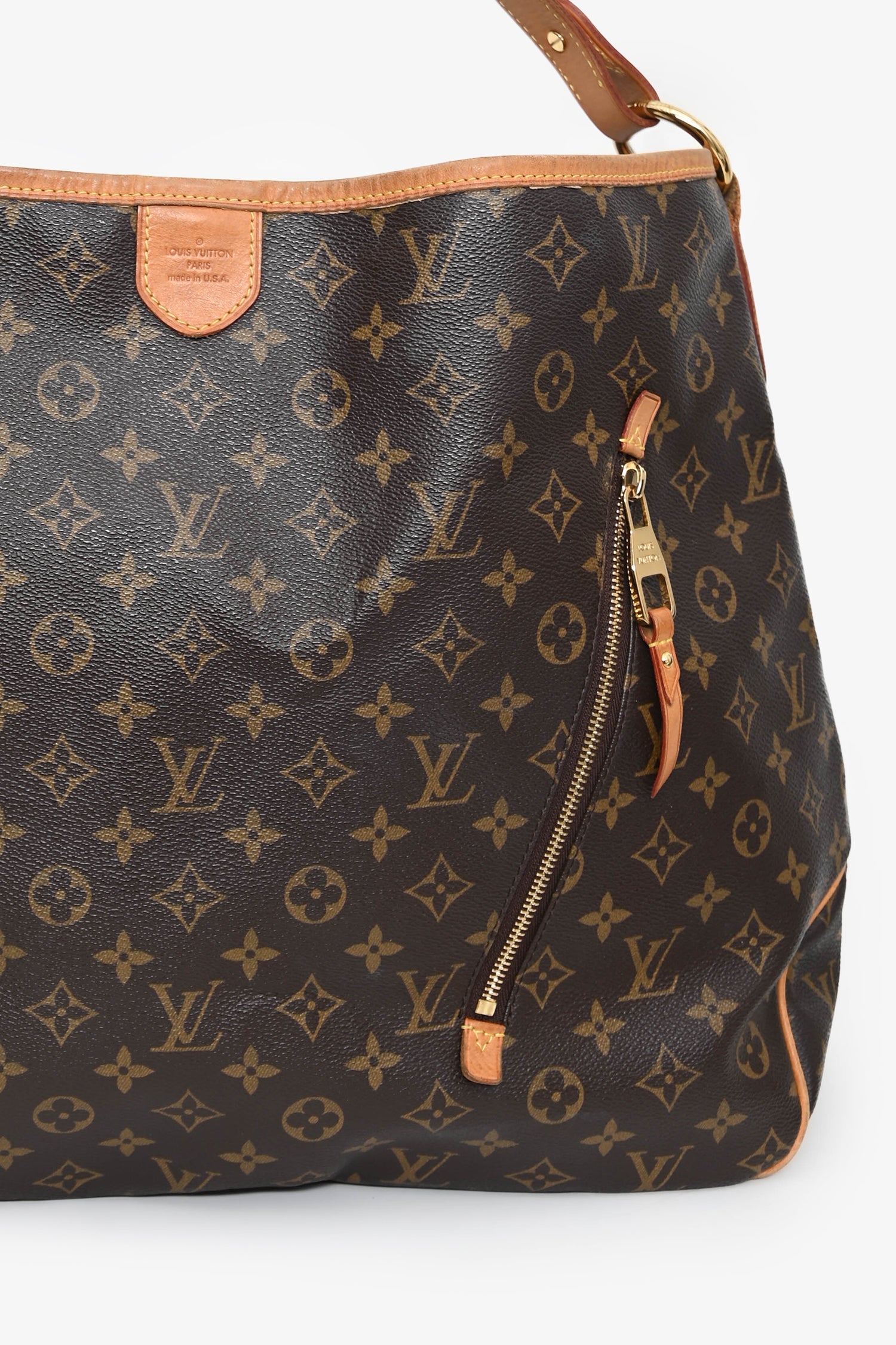 Louis Vuitton 2011 Monogram 'Delightful GM'. Top interior latch closure. Single shoulder strap. 2 exterior zip pockets. Lined interior. Single interior wall zip pocket. Gold-tone hardware. Tonal stitching.