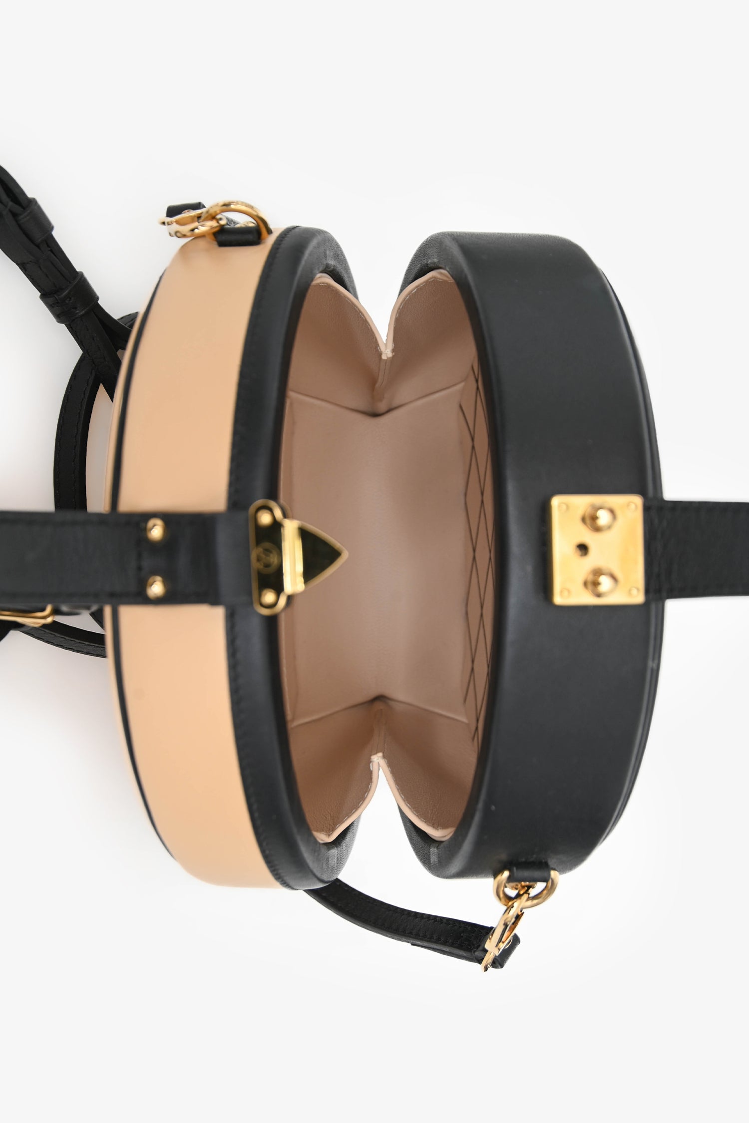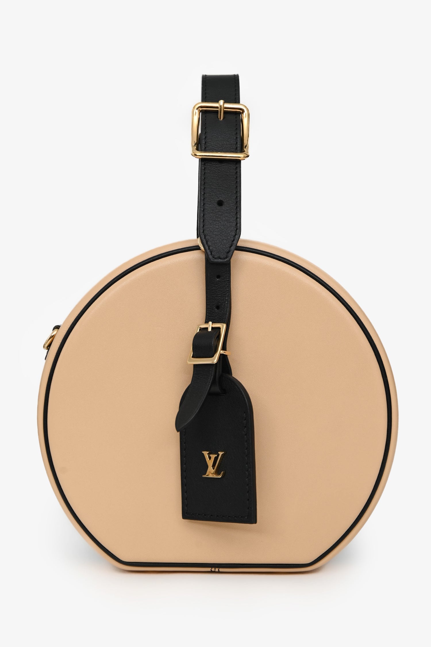 Louis Vuitton 2018 Black/Beige Leather Boite Chapeau Top Handle with Strap. Zip-around closure. Adjustable top handle and detachable/adjustable shoulder strap. 1 interior compartment with 1 interior slip pocket. Gold-tone hardware. Tonal stitching.