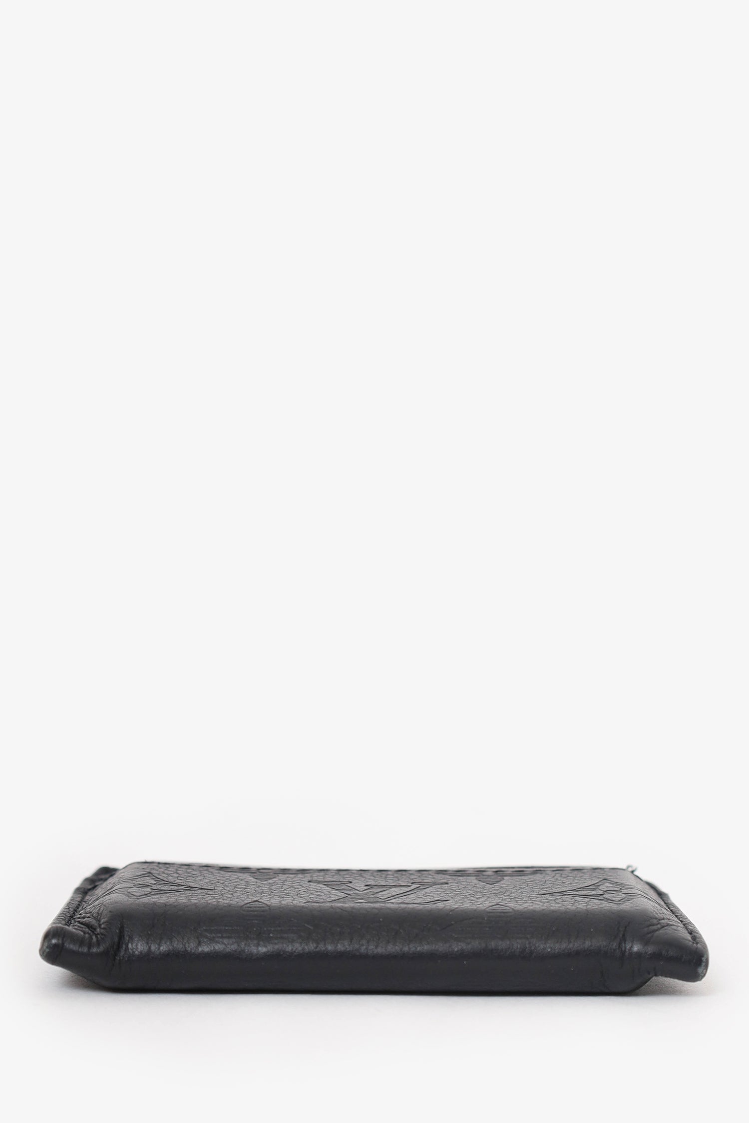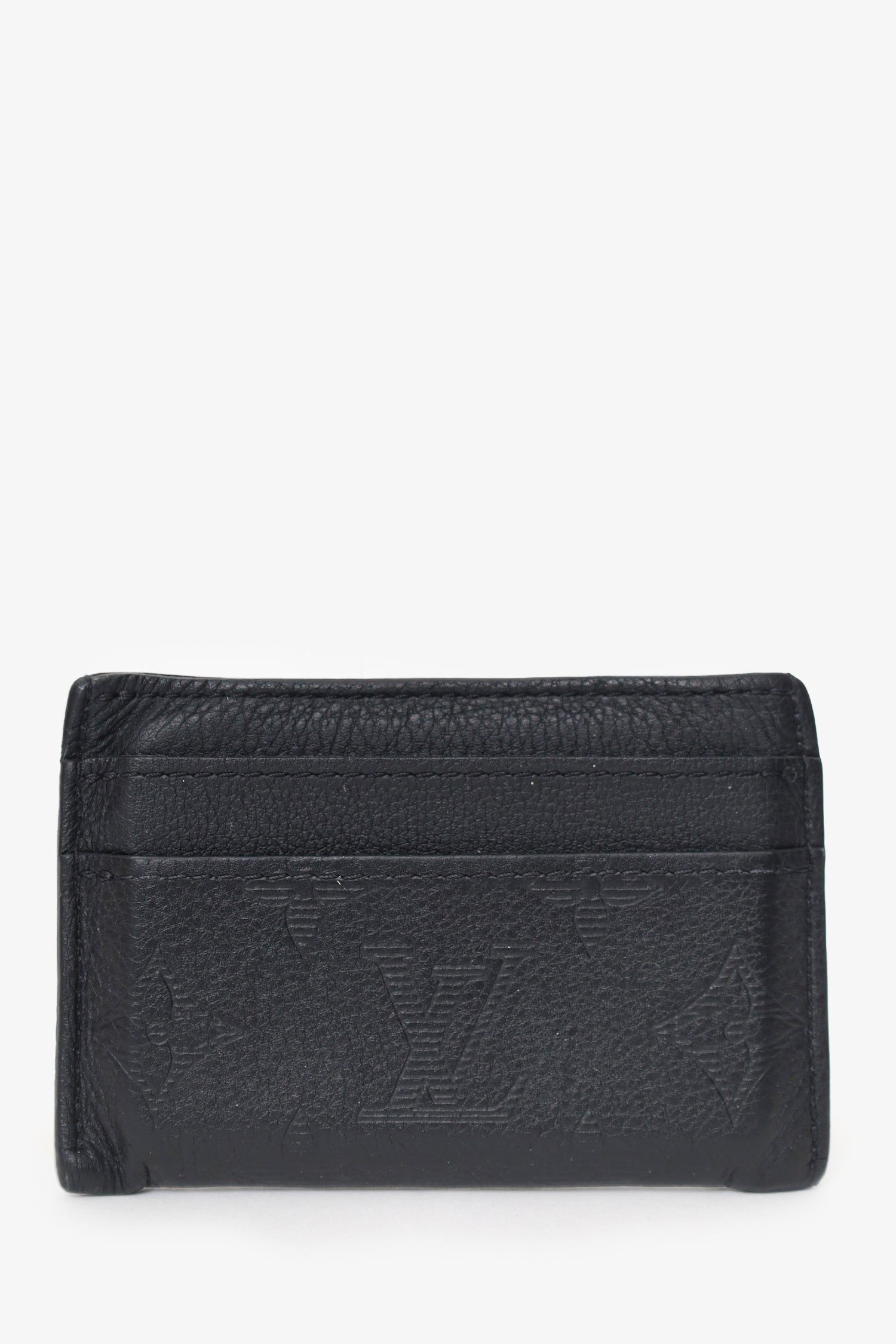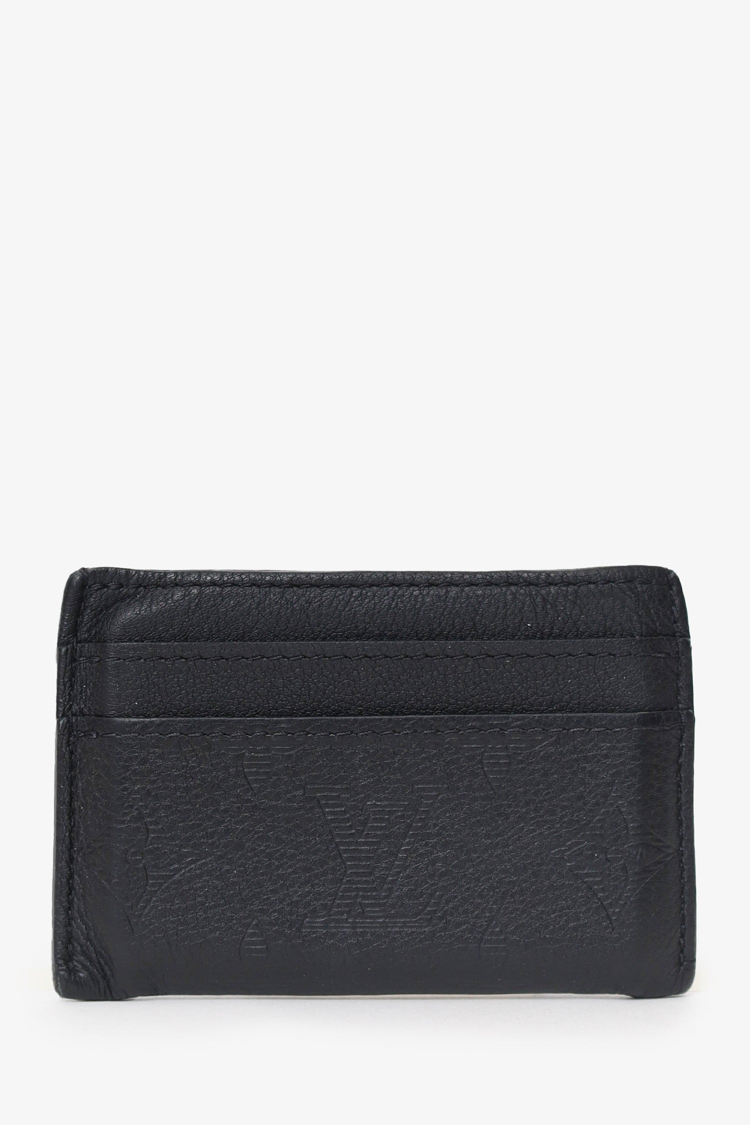 Louis Vuitton Black Monogram Shadow Double Card Holder. 6 card slots; 2 front, 1 top, and 2 rear. Tonal stitching.