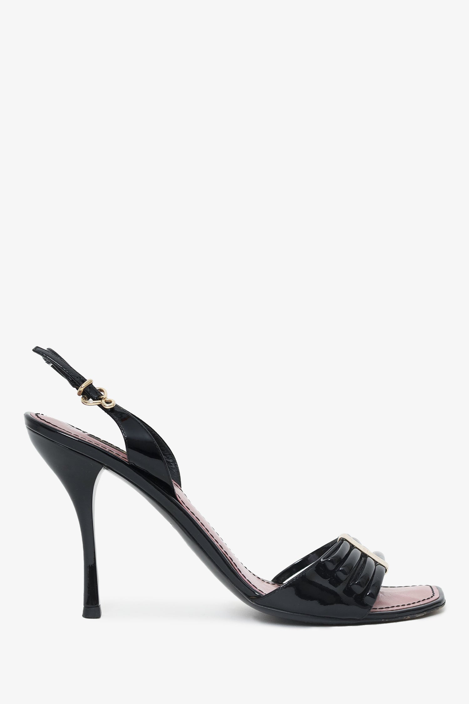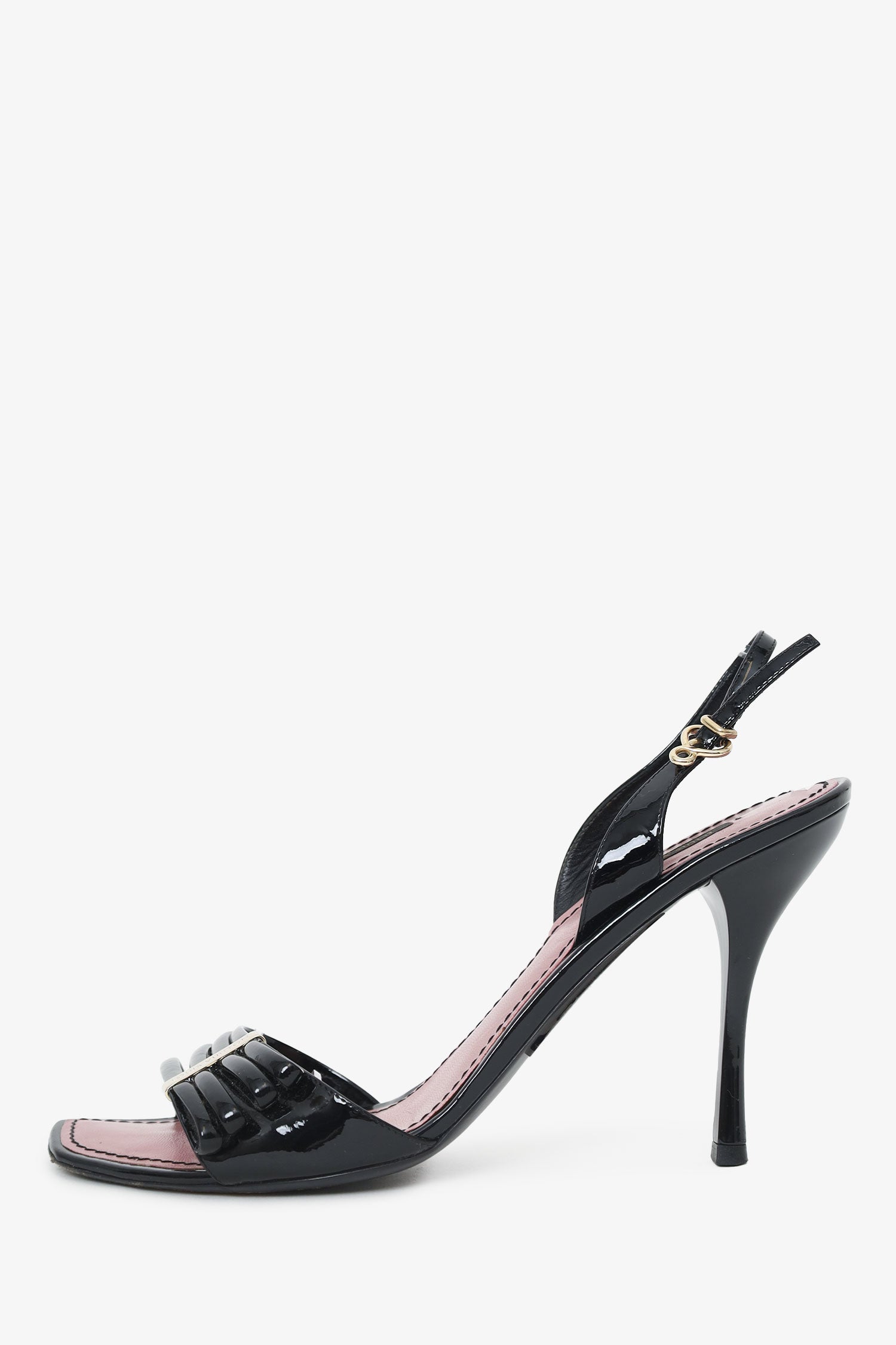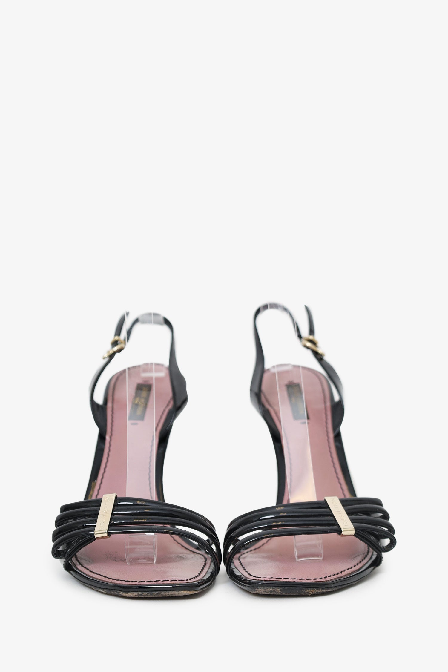Louis Vuitton Black Patent Leather Strappy Sling Back Heels Size 39.5