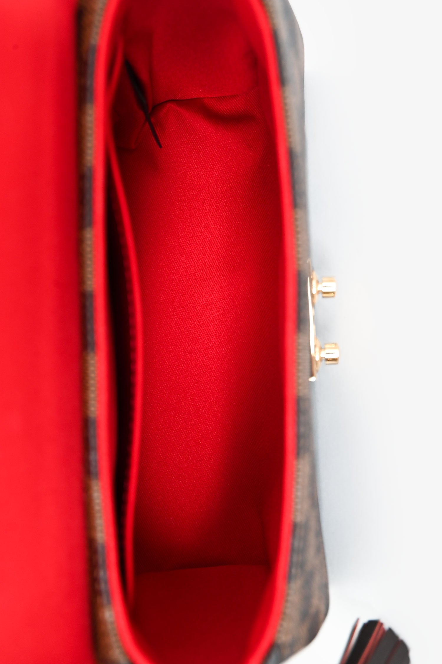 Louis Vuitton Damier Ebene 'Croisette' Top Handle With Strap. Front fold-over flap with pinch-lock closure. Detachable strap. Textile-lined interior. Single interior wall slip pocket. Detachable tassel. Gold-tone hardware. Tonal stitching.