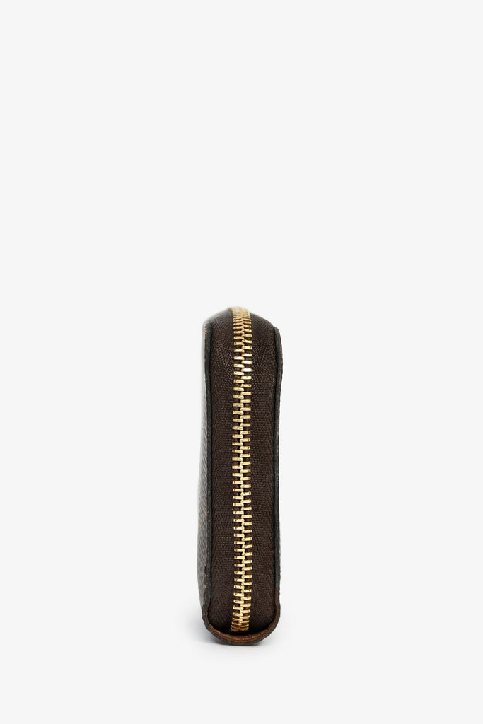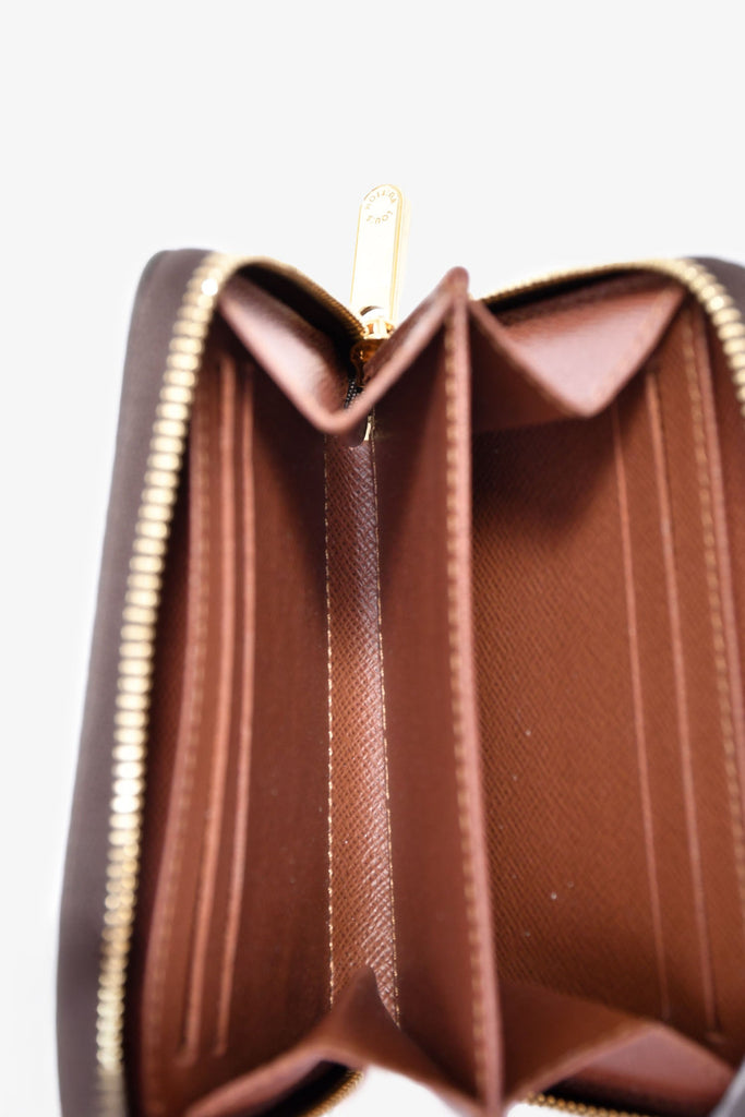 Louis Vuitton Monogram Canvas Zippy Coin Purse. Top zip closure. 9 interior compartments: 5 card slots, 2 wall slip pockets, 2 coin compartments. Gold-tone hardware. Tonal stitching.