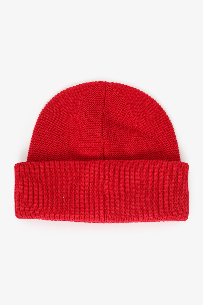 Louis Vuitton Red Wool Knit 'LV' Hat. Pull-on. Contrast and tonal stitching.