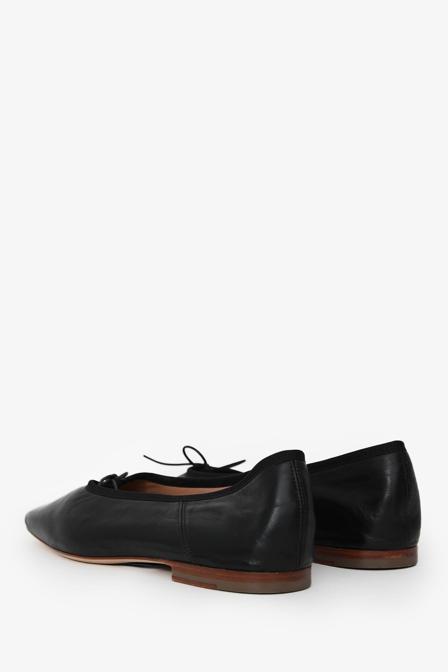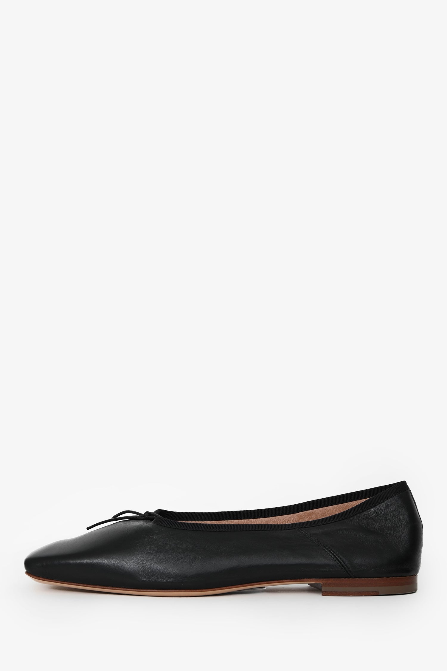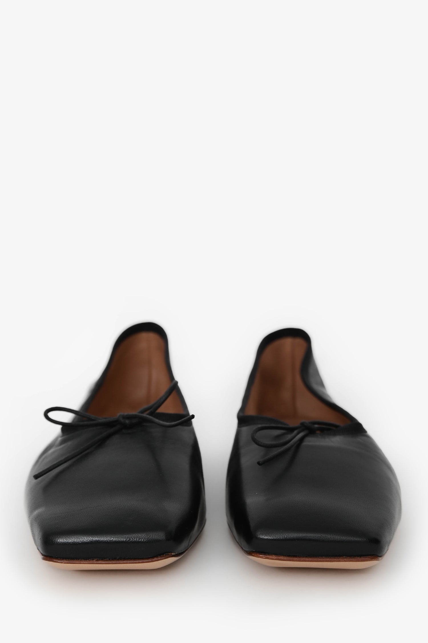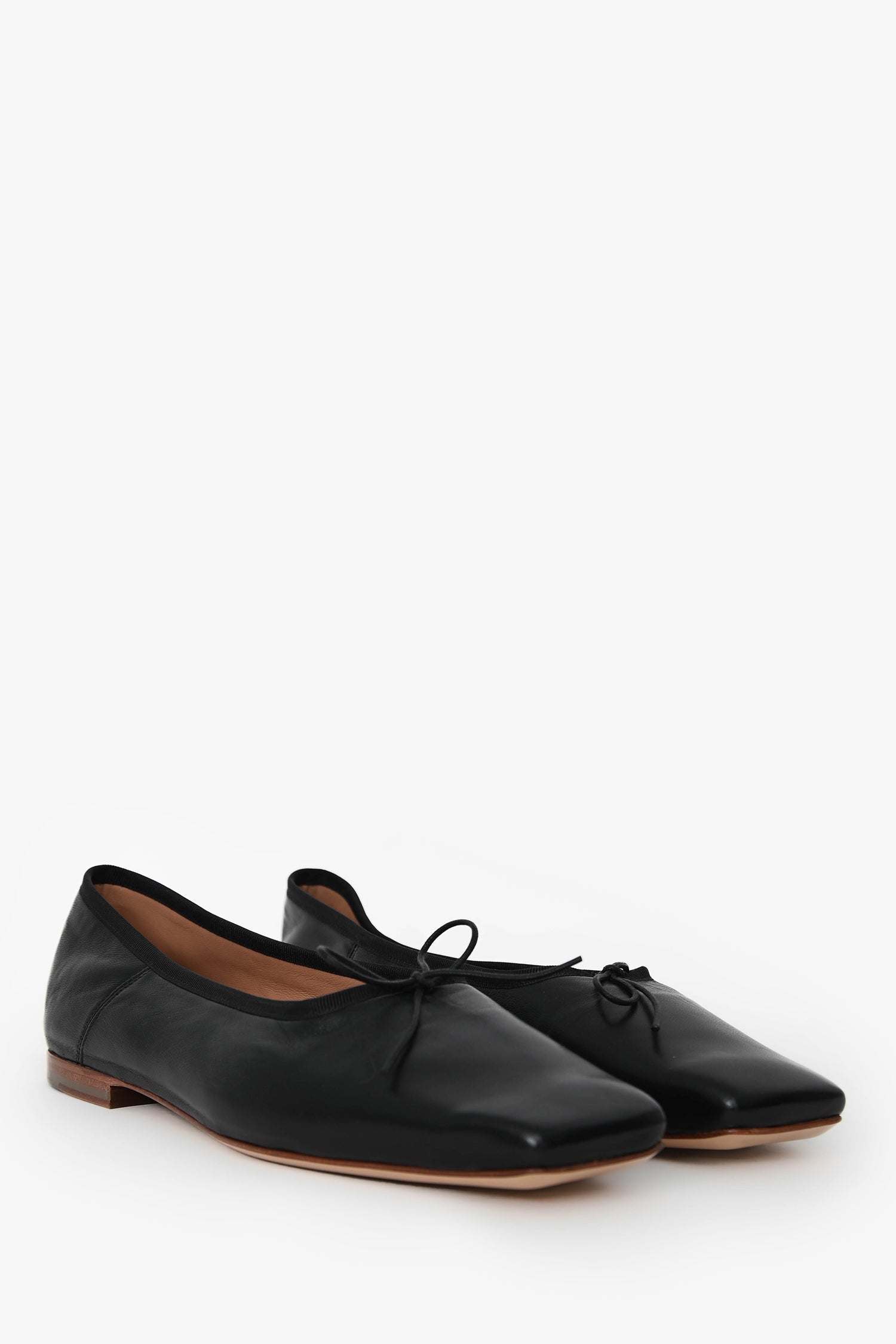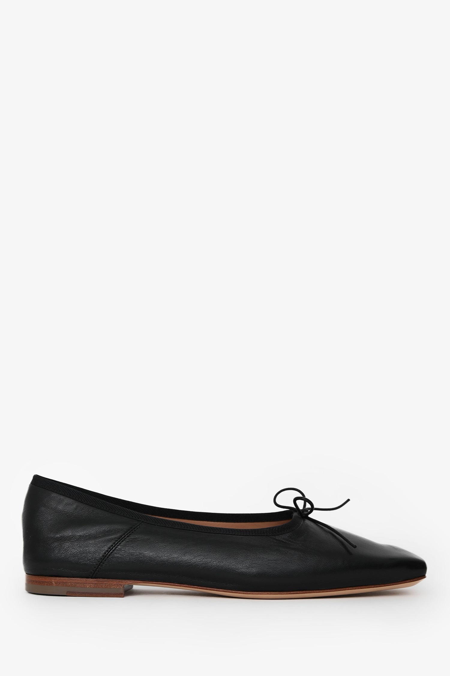 Mansur Gavriel Black Leather Square Toe Ballerina Flats. Bow detail at the upper. Tonal stitching.