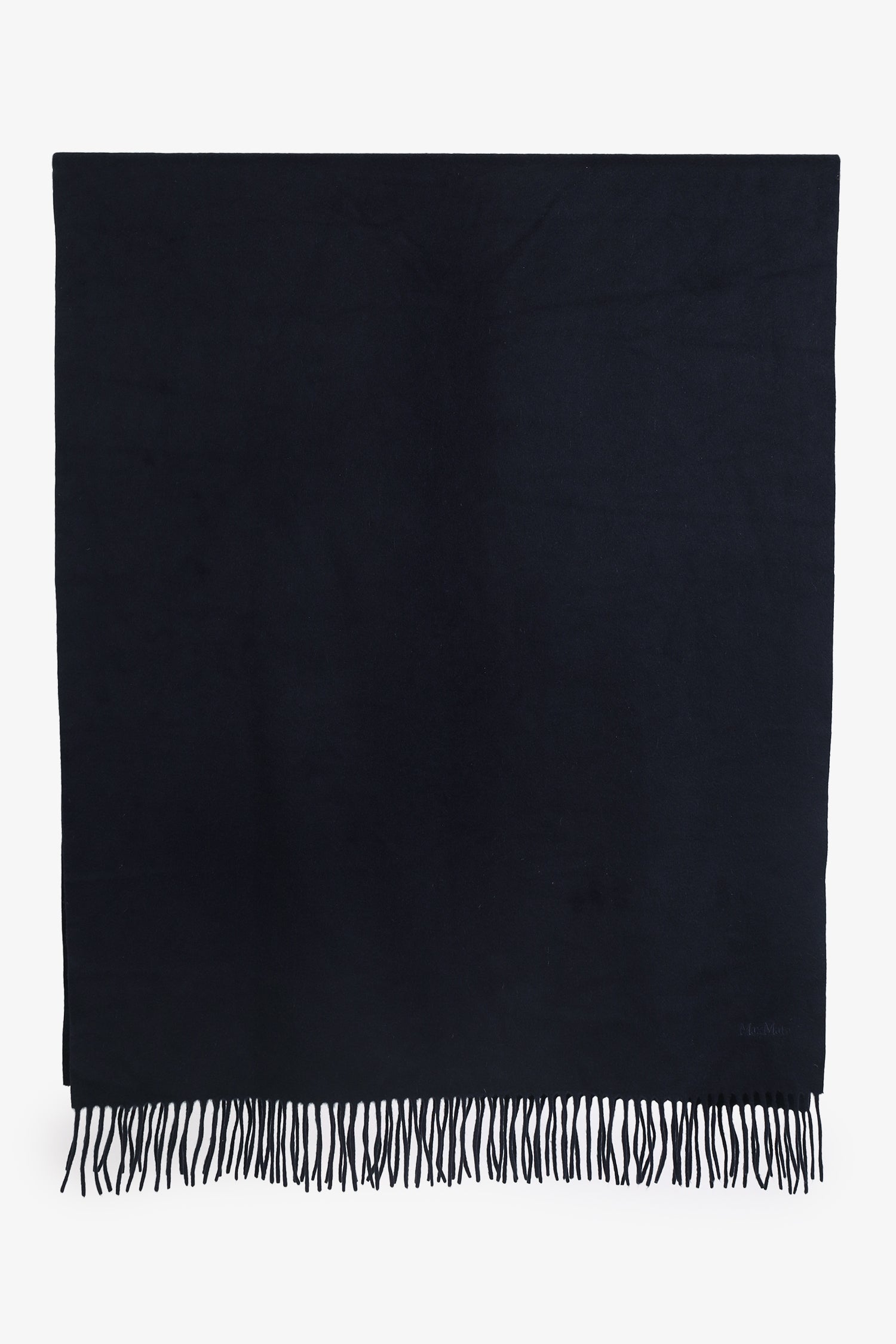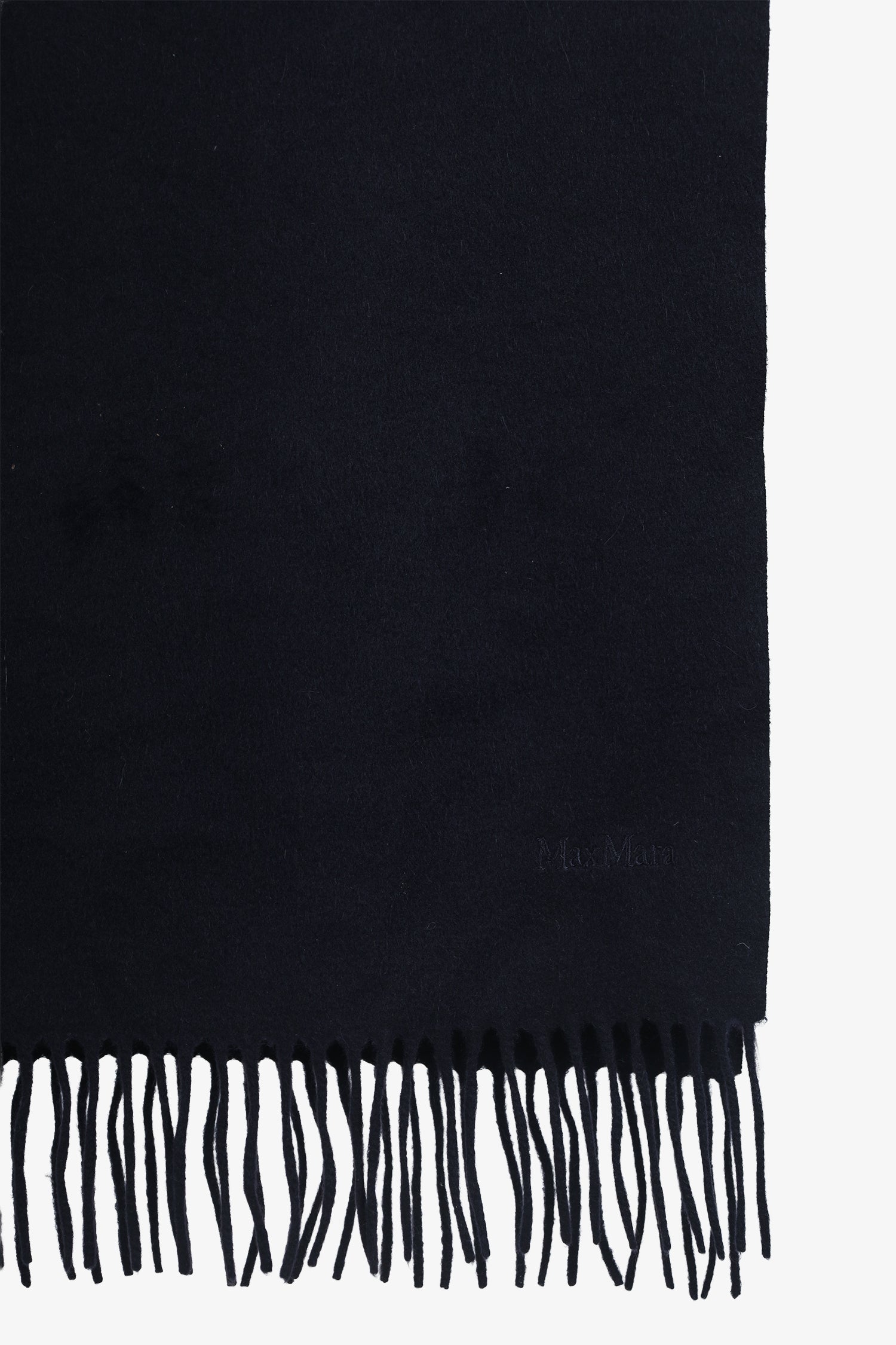 Max Mara Black Cashmere Fringe Scarf. Tonal stitching.
