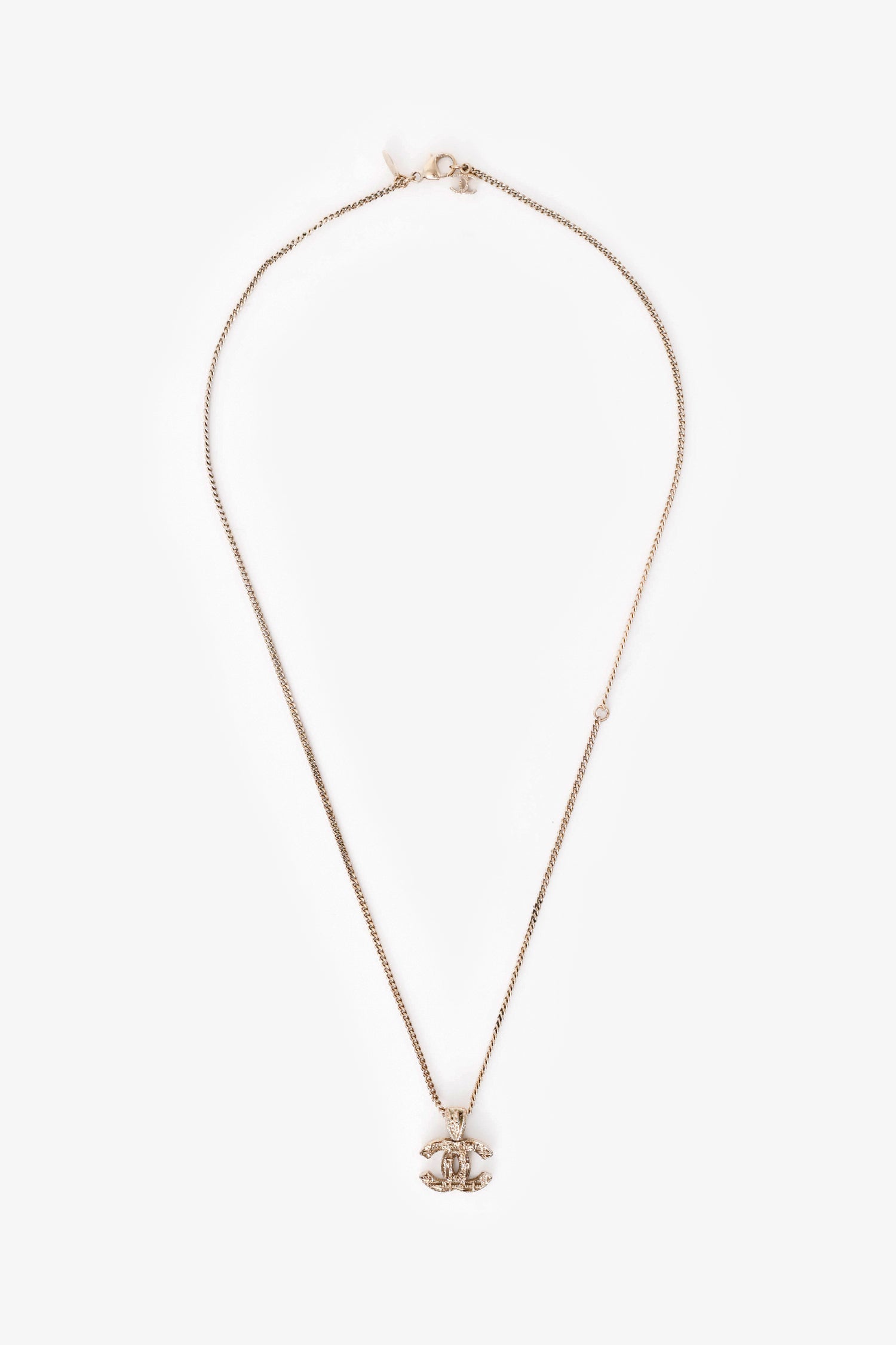 Pre-Loved Chanel™ 2013 Gold Tone Metal Tweed CC Pendant Necklace.