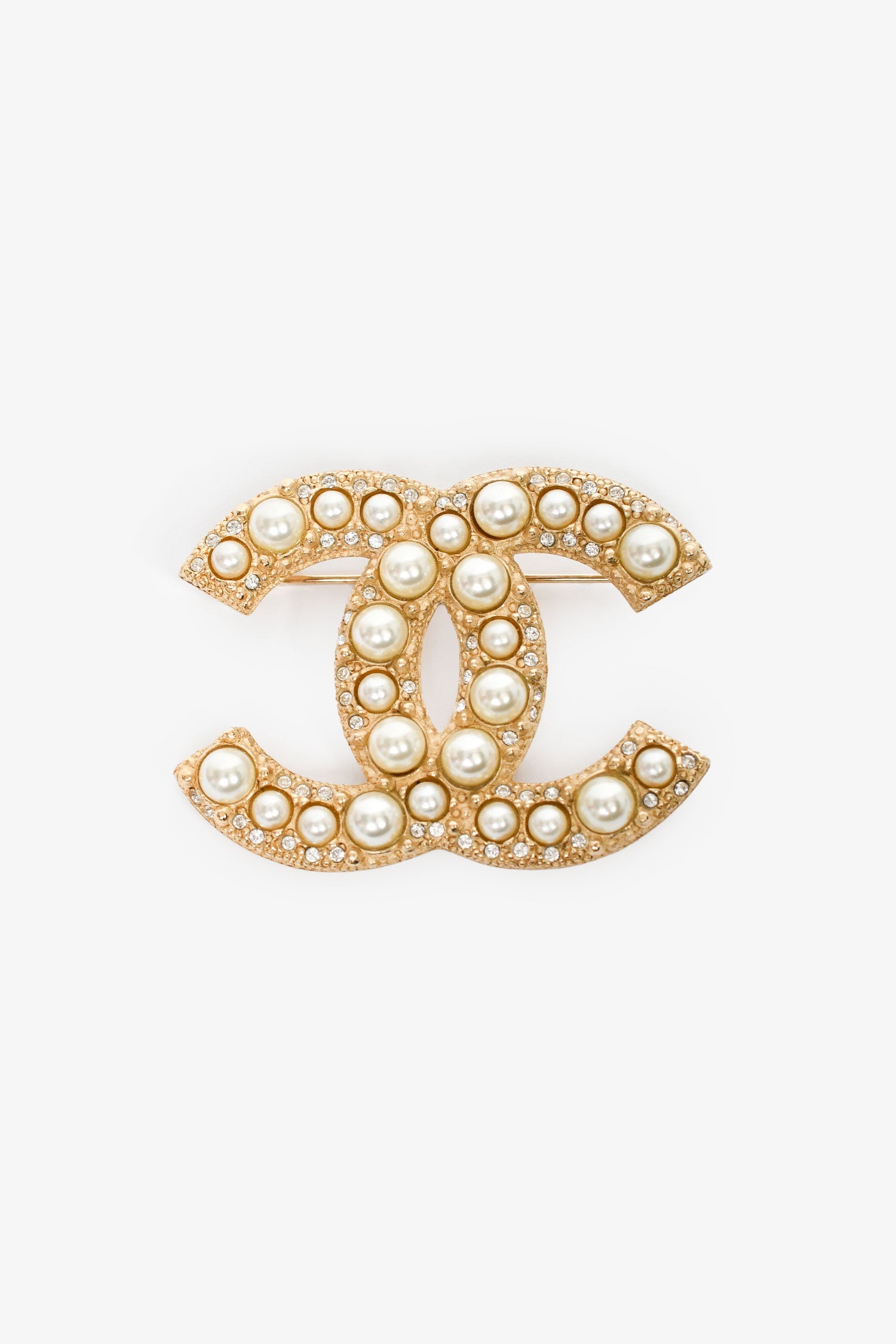 Pre-Loved Chanel™ 2021 Gold Tone Metal/Faux Pearl CC Brooch