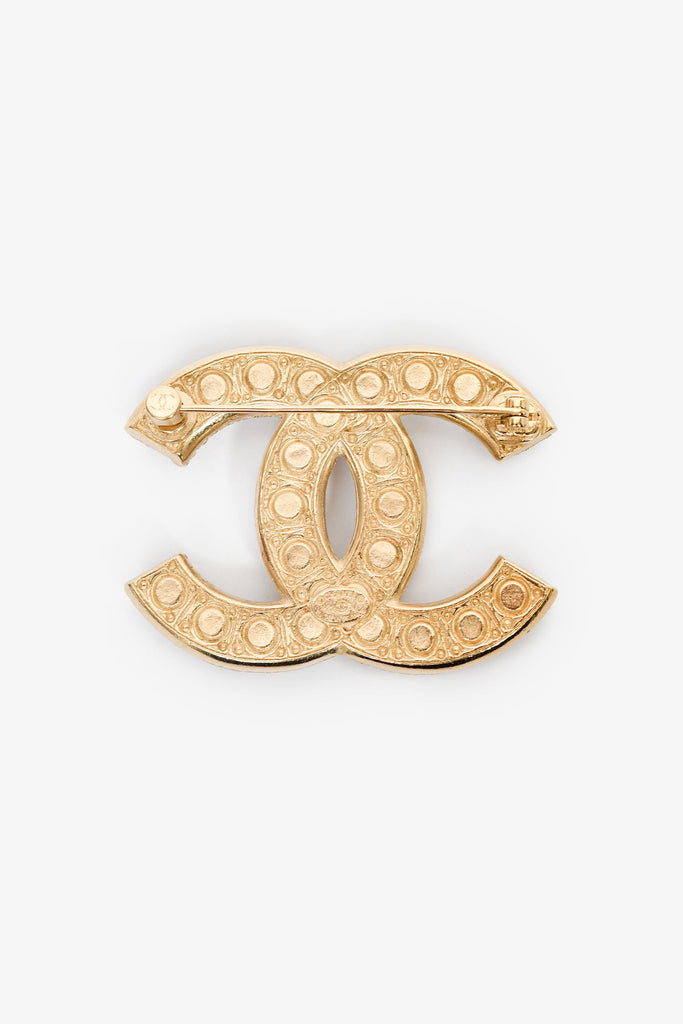 Pre-Loved Chanel™ 2021 Gold Tone Metal/Faux Pearl CC Brooch. Rear pin closure.