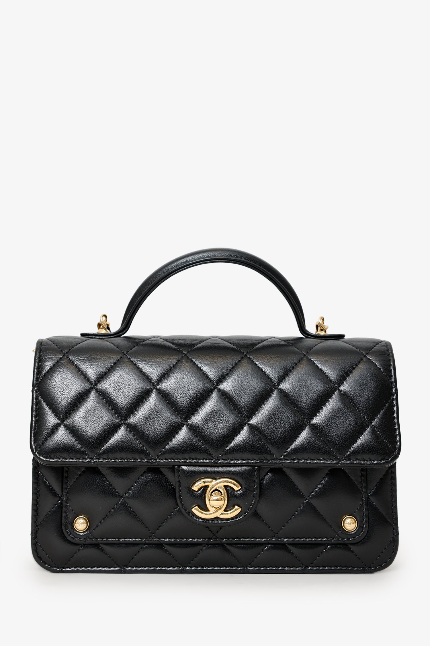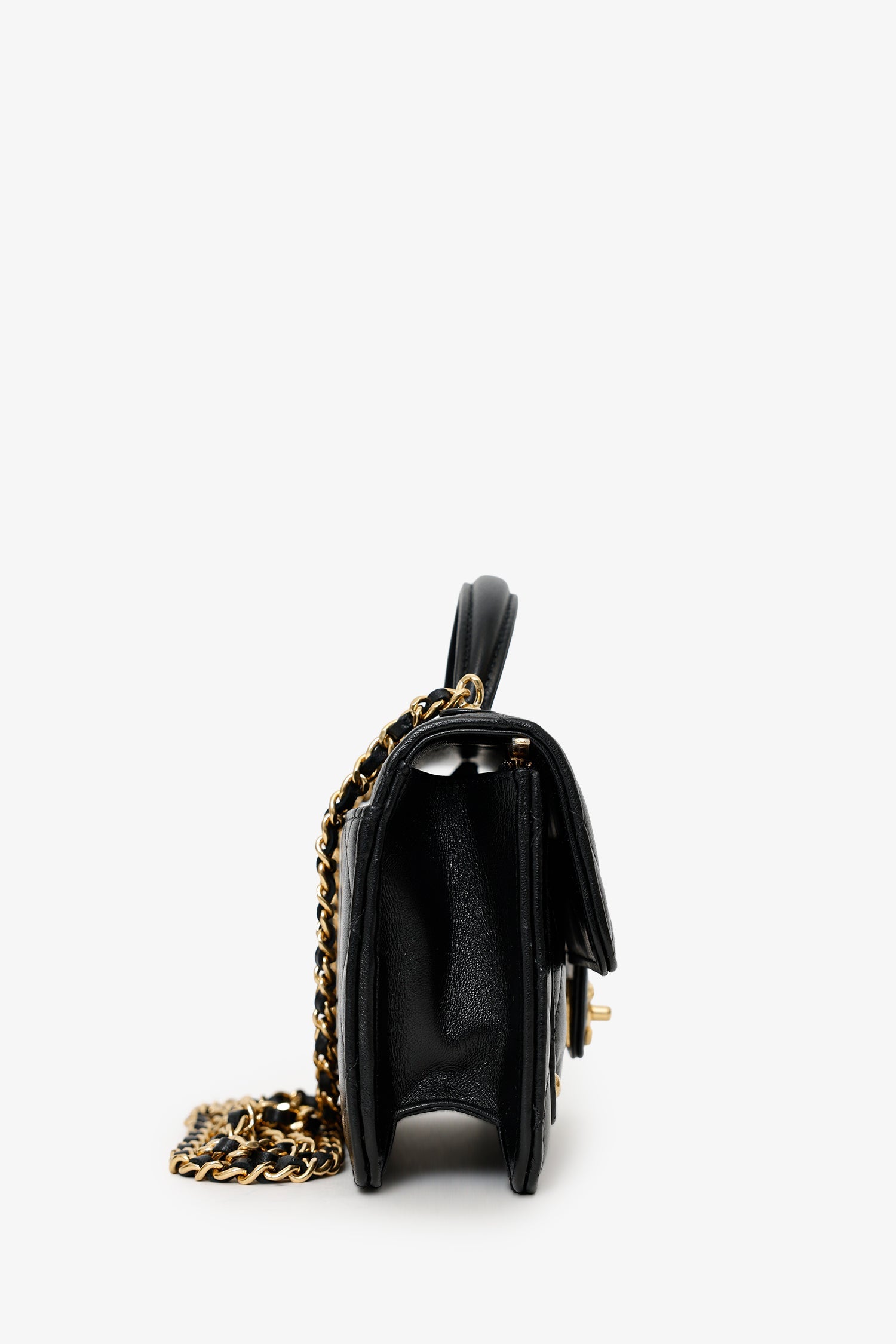 Pre-Loved Chanel™ 25B Black Lambskin Quilted Top Handle Wallet On Chain