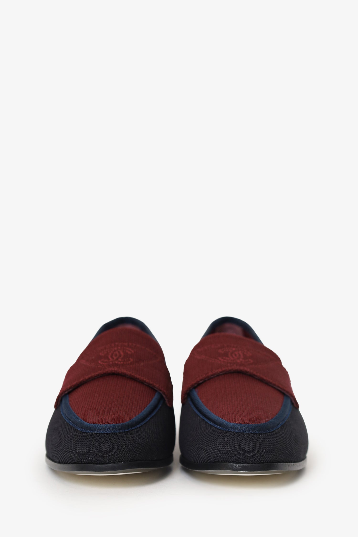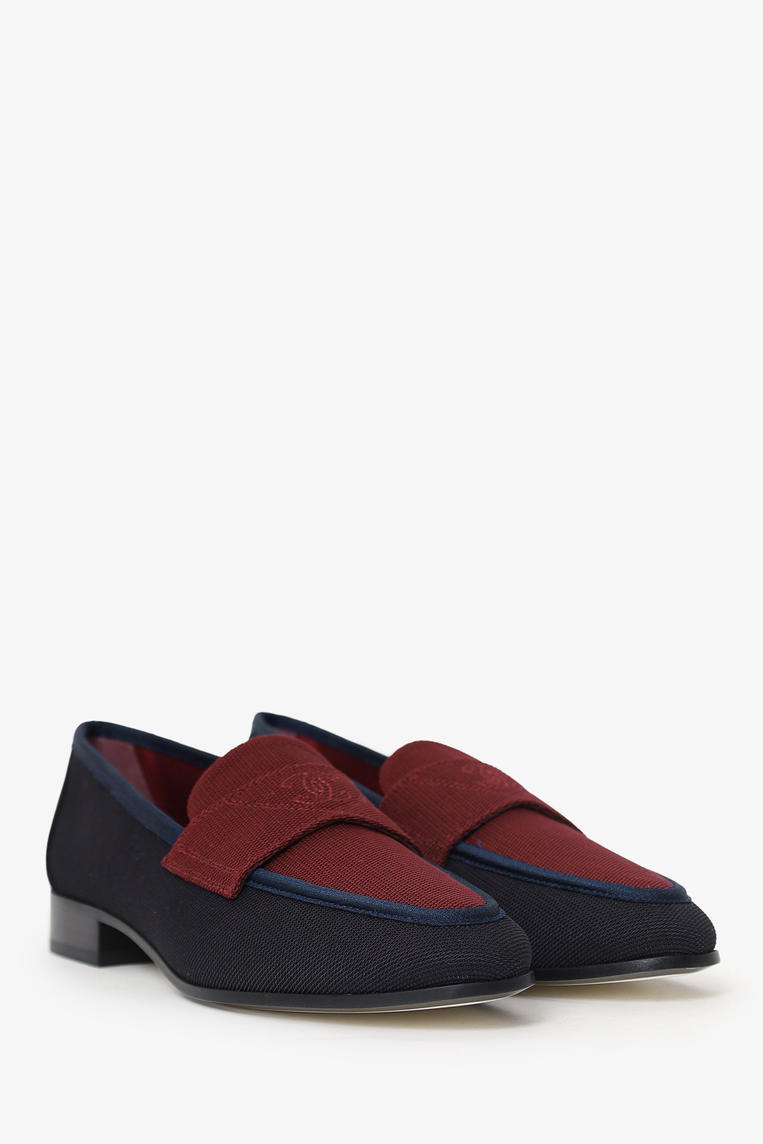 Pre-Loved Chanel™ Black/Burgundy Fabric CC Loafers Size 36