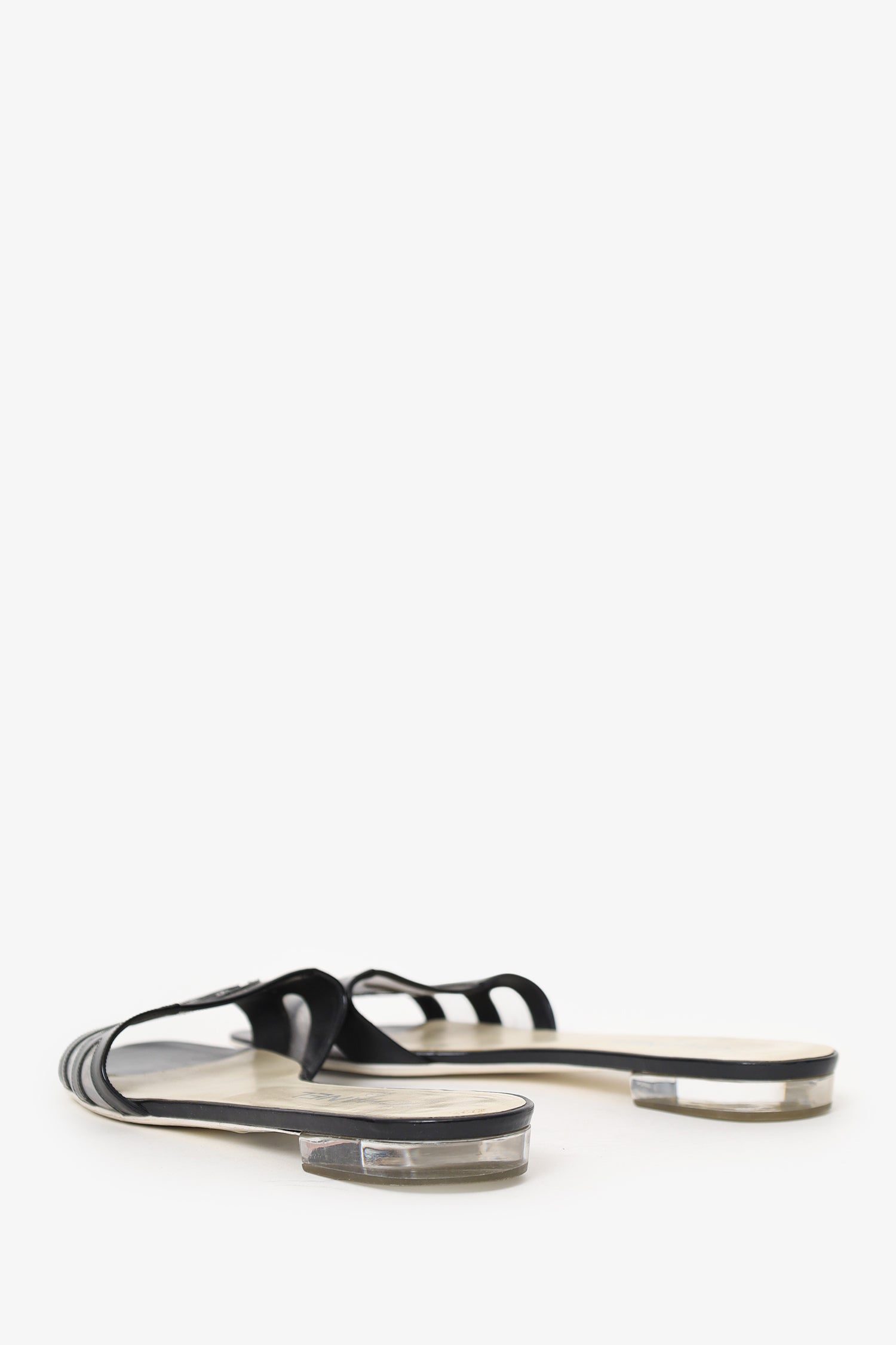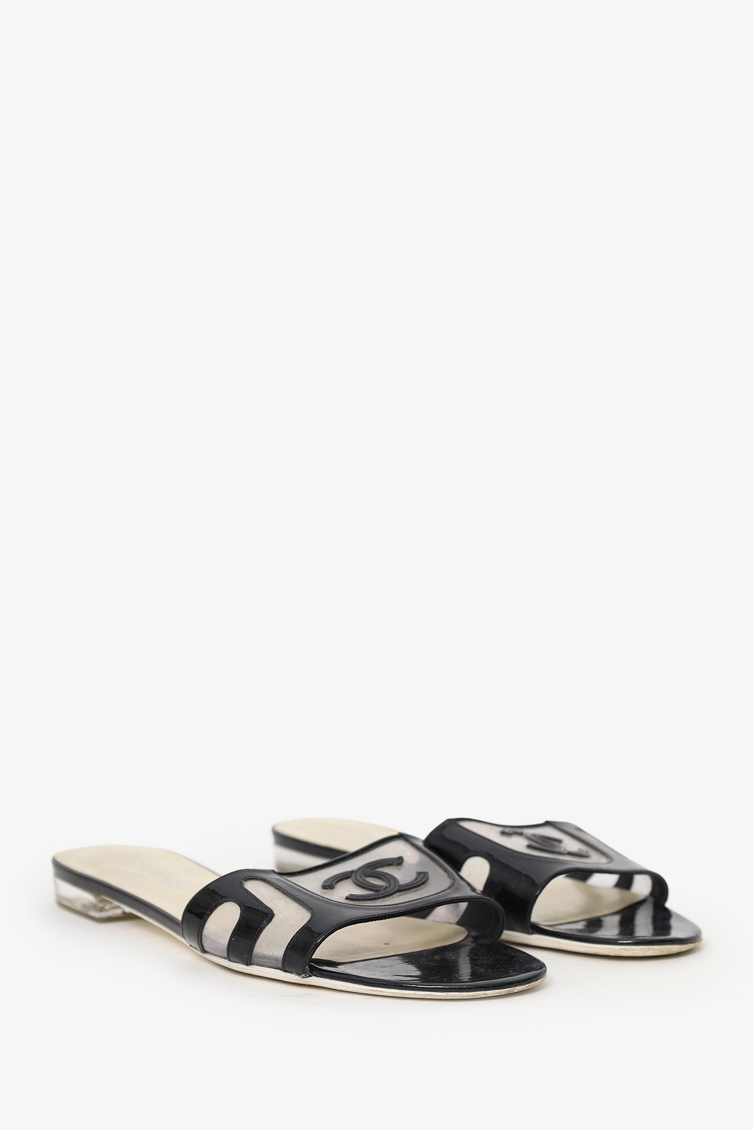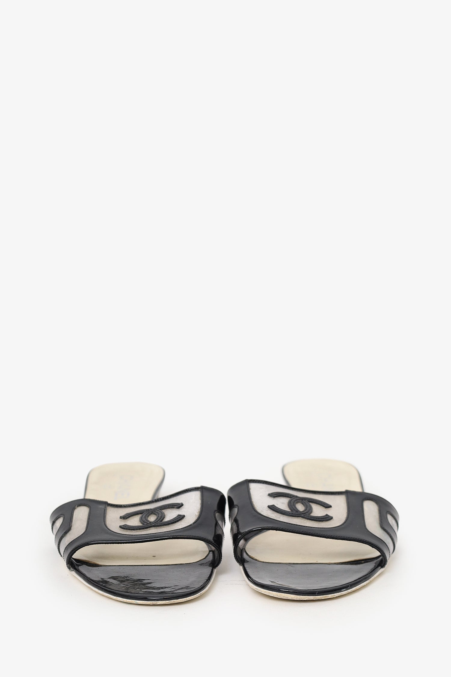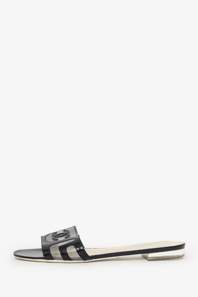 Pre-Loved Chanel™ Black Patent Leather/PVC 'CC' Slides Size 40