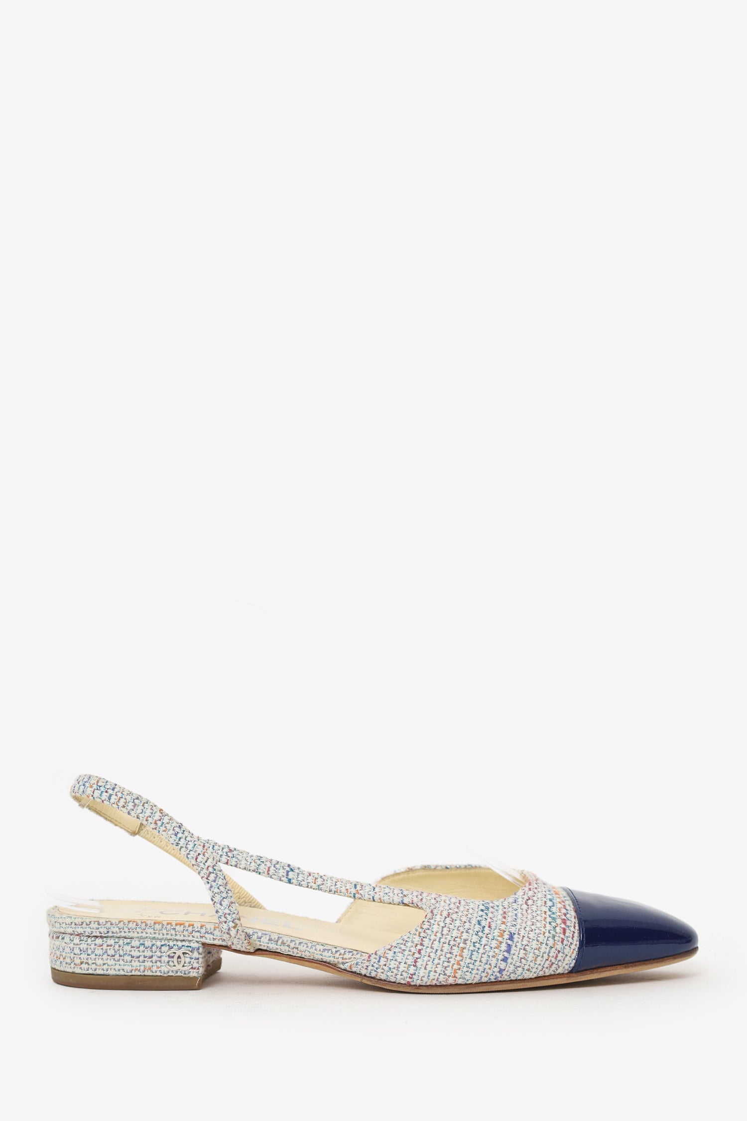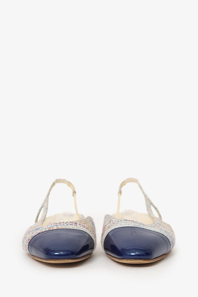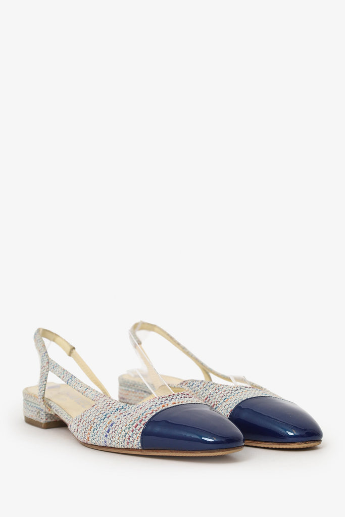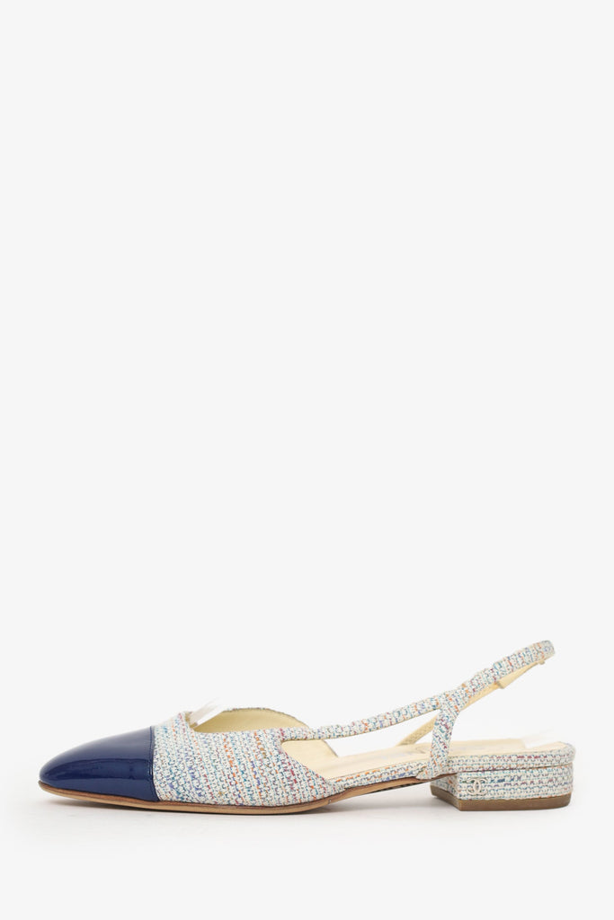 Pre-Loved Chanel™ Blue Tweed Cap Toe Slingback Pumps Size 37.5