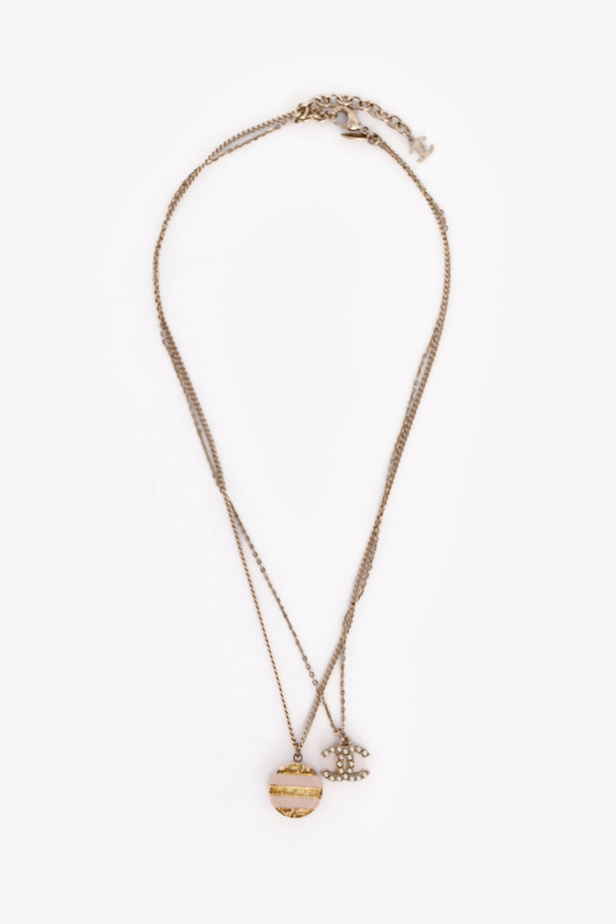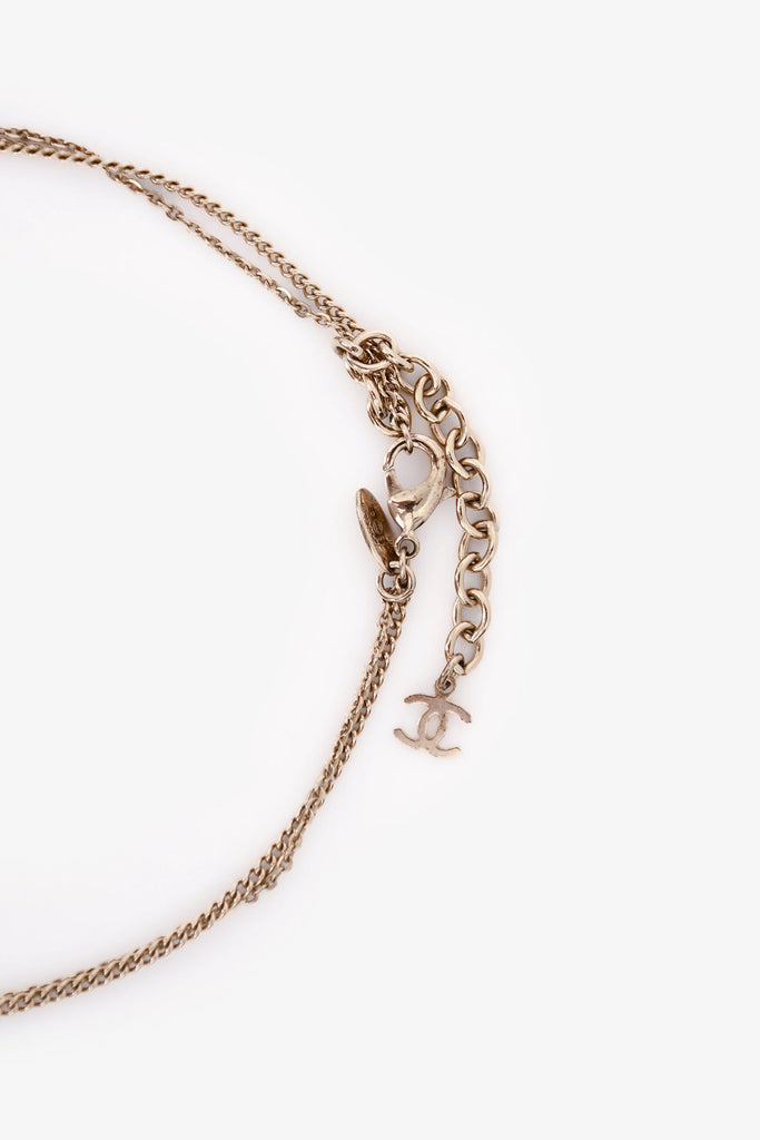 Pre-Loved Chanel™ Gold Toned Pink CC Pearl Pendant Necklace