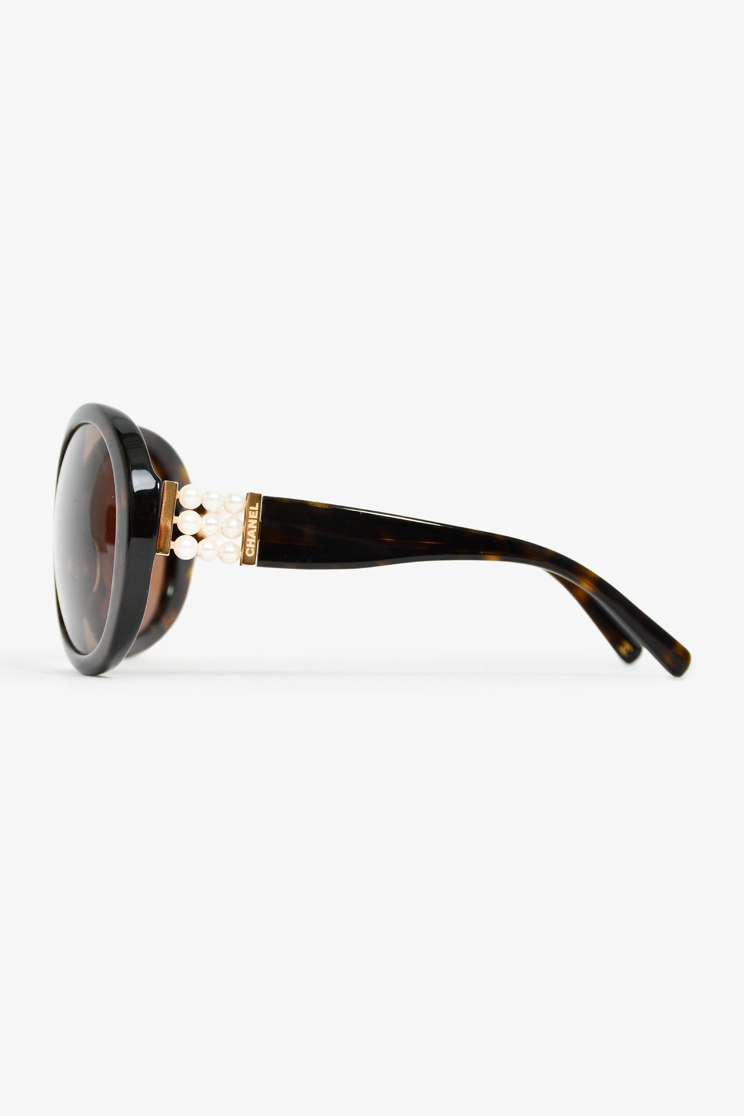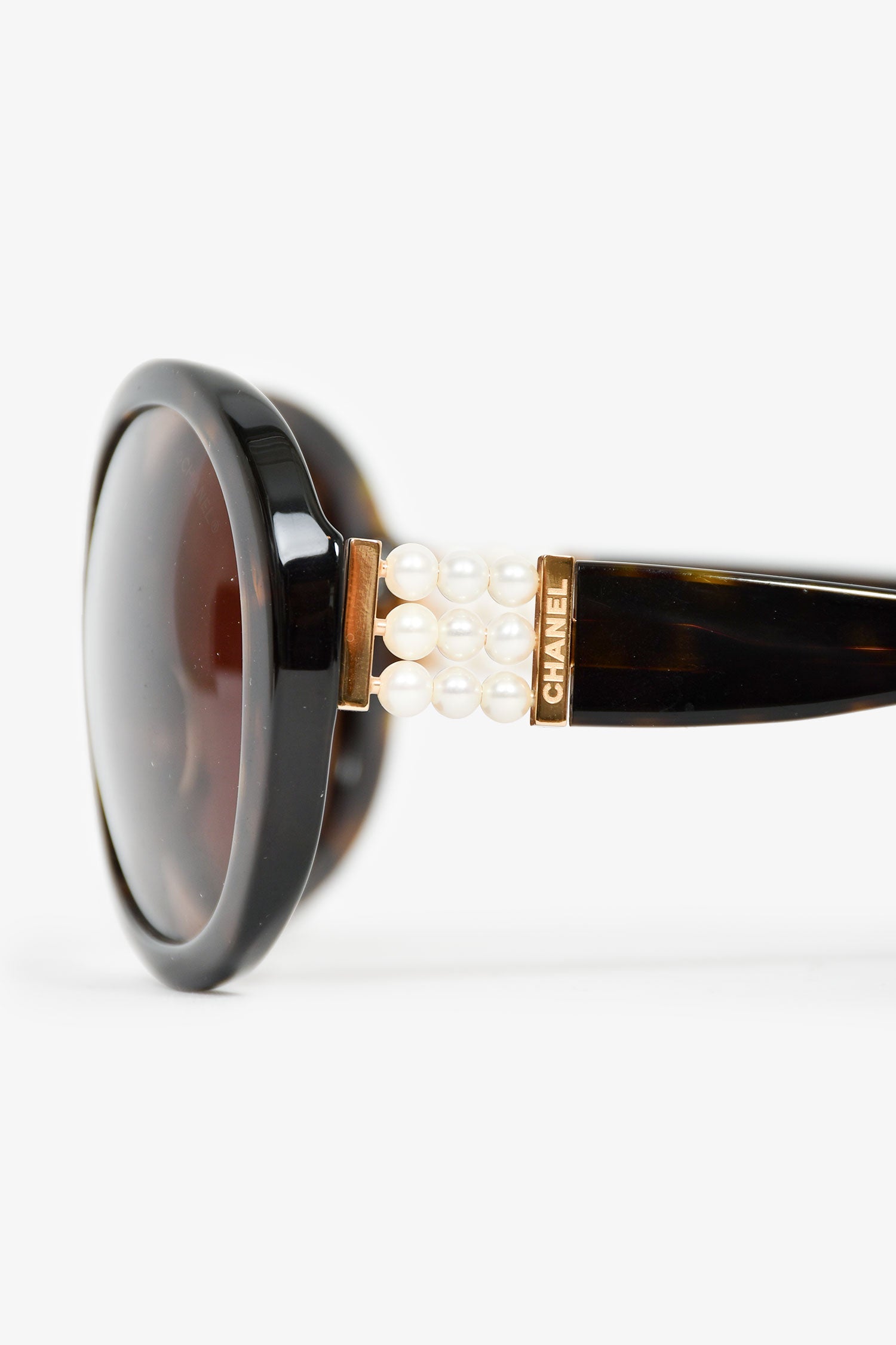 Pre-Loved Chanel™ Tortoiseshell Faux Pearl Detail Round Sunglasses