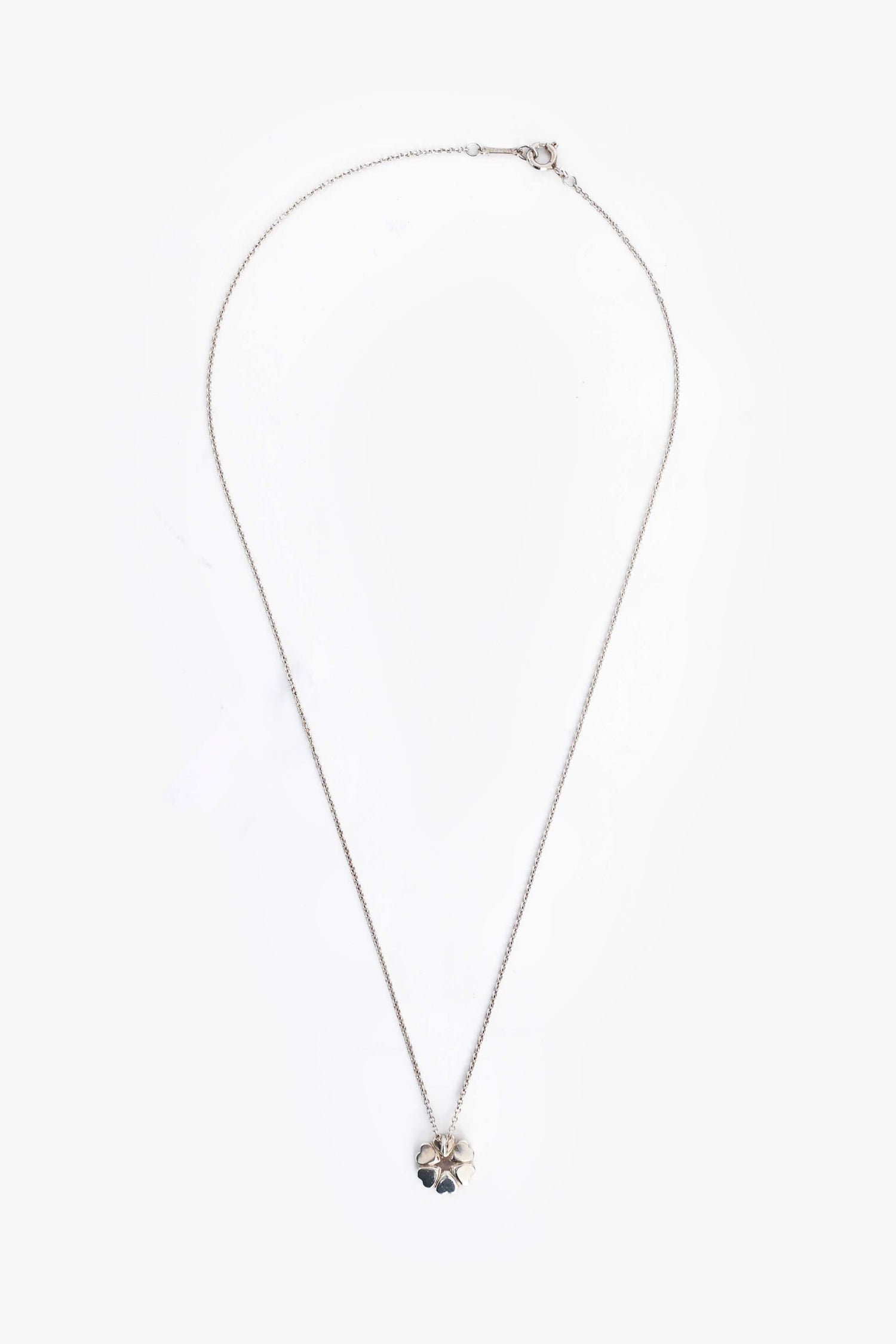 Tiffany & Co Sterling Silver Flower of Hearts Pendant Necklace. Rear spring ring clasp.