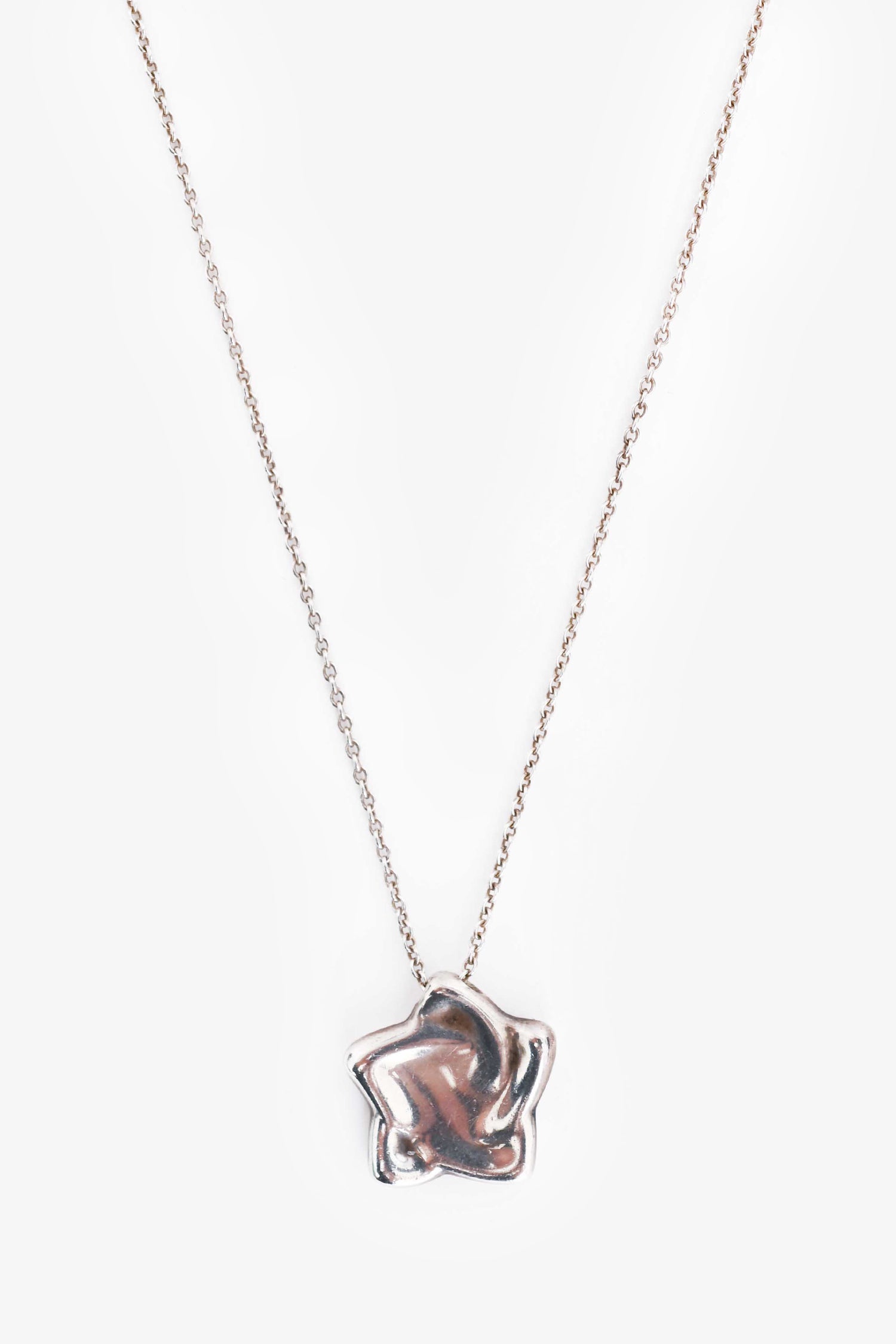 Tiffany & Co. Sterling Silver Star Necklace. Spring ring clasp closure. Silver-tone hardware.