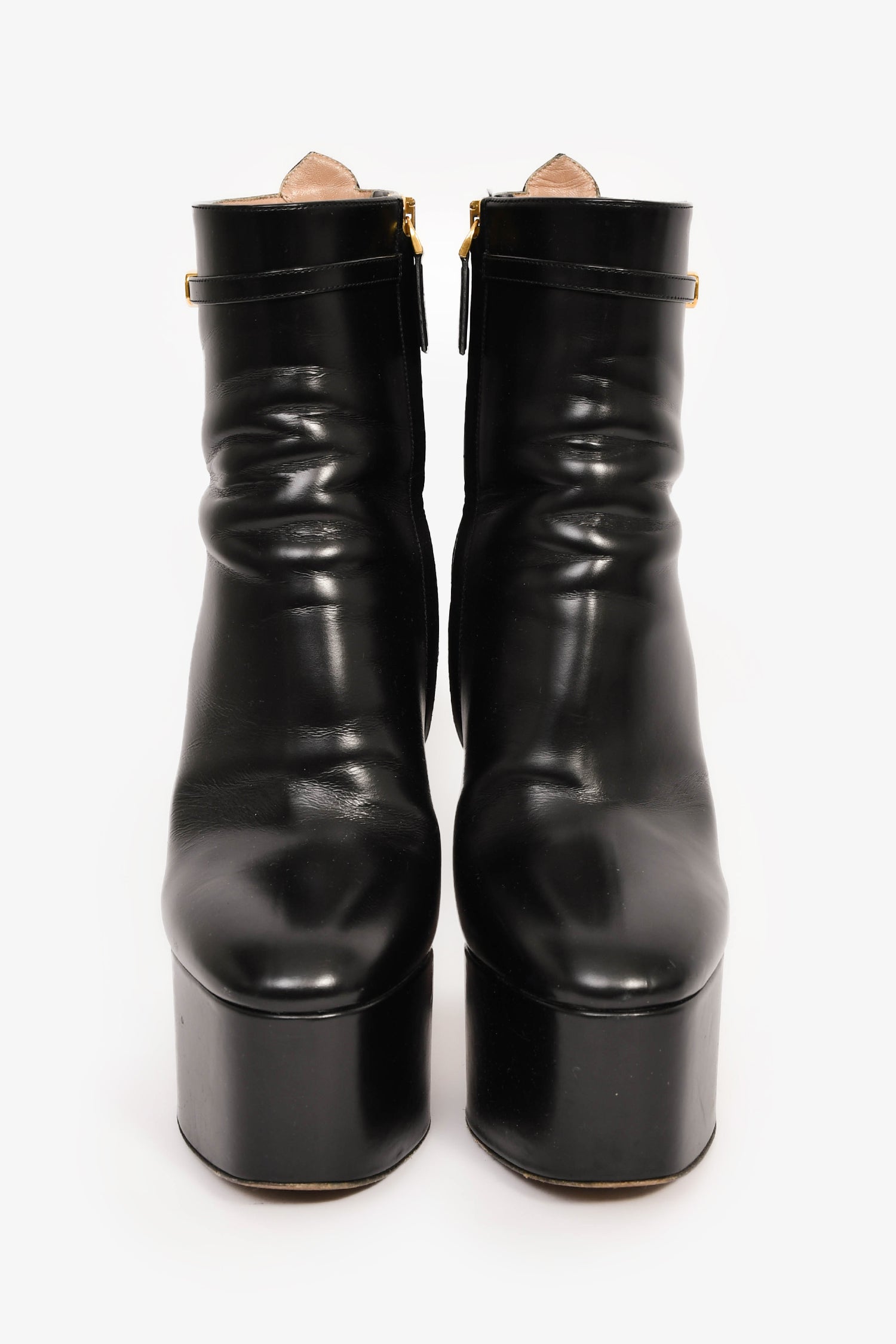 Valentino Black Leather 'V' Platform Heeled Boots Size 38