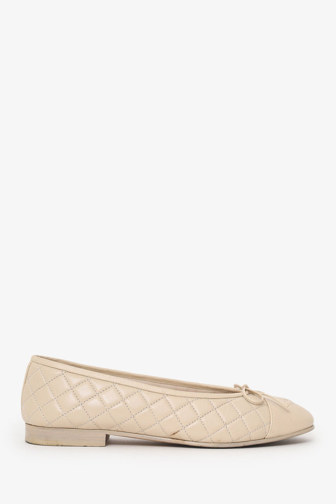 Chanel Beige Lambskin Quilted CC Cap Toe Ballet Flats Size 36.5