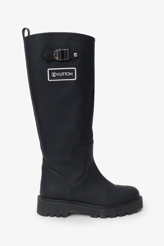 Louis Vuitton Black Rubber Calfskin Territory Flat Boots Size 38