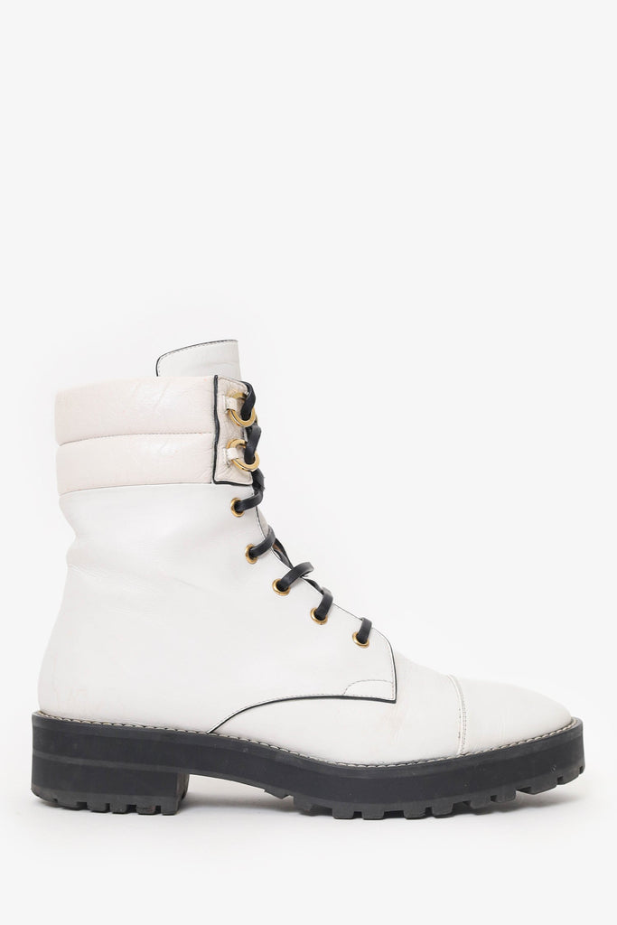 Stuart Weitzman White Leather Lexy Lace-up Combat Boots Size 8