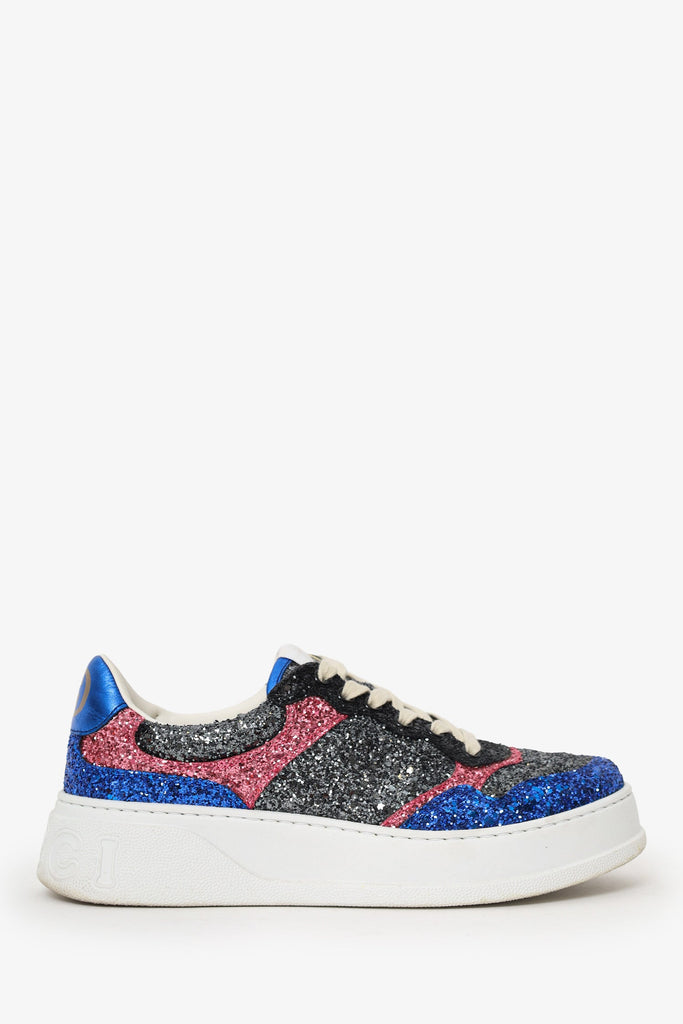 Gucci White/Blue Glittery Low Top Sneakers Size 39.5
