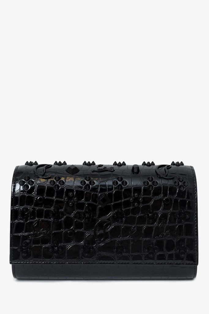 Christian Louboutin Black Crocodile Embossed Leather Studded Paloma on Chain