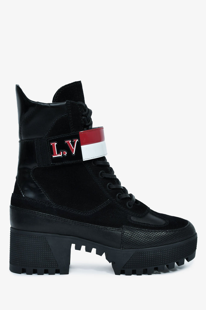 Louis Vuitton Black Suede Striped Combat 'Laureate' Boots Size 36