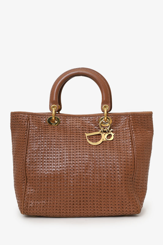 Christian Dior 2008 Brown Soft Leather Woven Lady Dior Tote