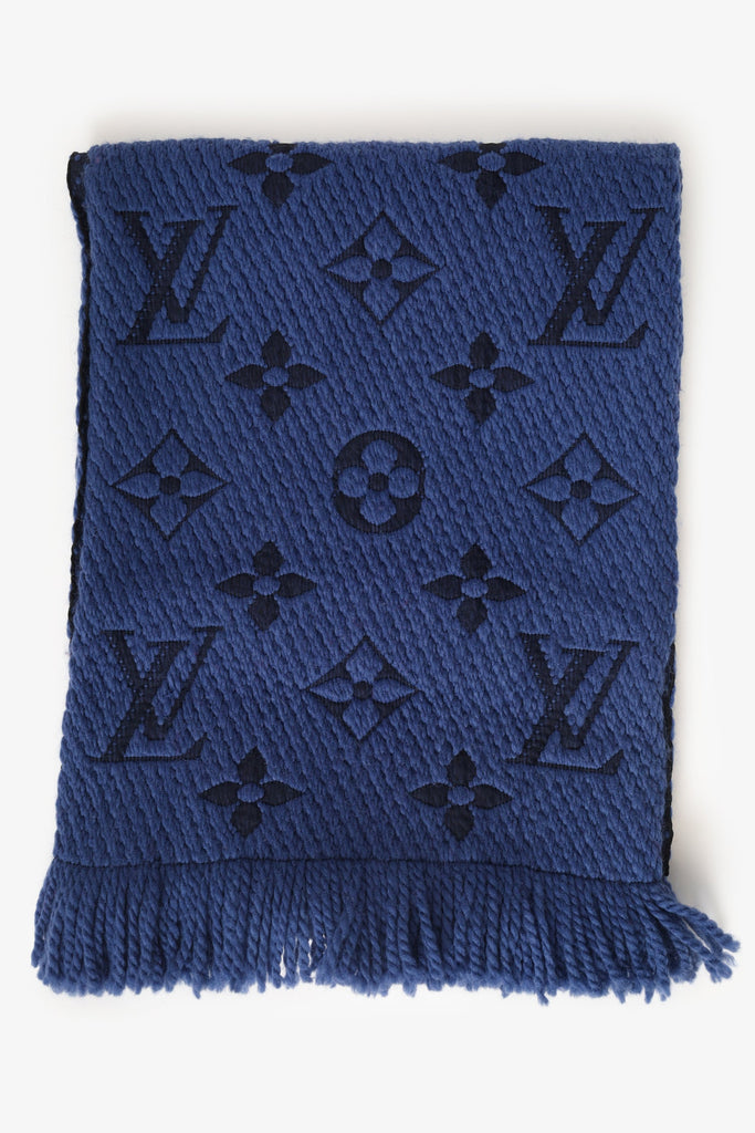 Louis Vuitton Blue Wool Knit Monogram Scarf