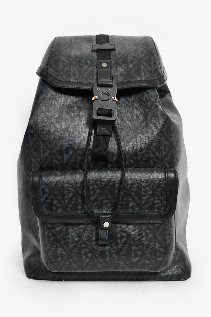 Christian Dior Homme Black Coated Canvas/Leather CD Diamond Print 'Hit The Road' Backpack