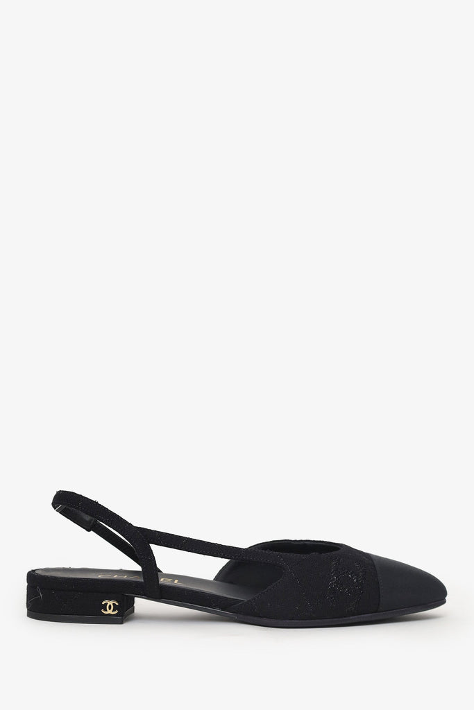 Pre-Loved Chanel™ Black Fabric Cap-Toe Slingback Flats Size 39.5