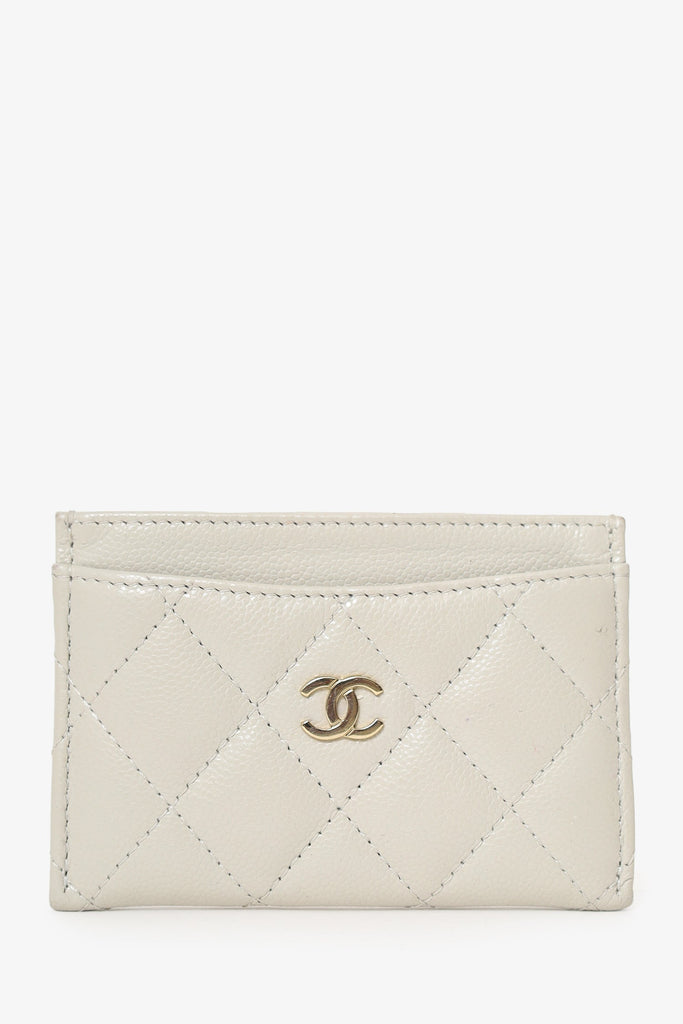 Pre-Loved Chanel™ Grey Quilted Caviar CC Card Holder