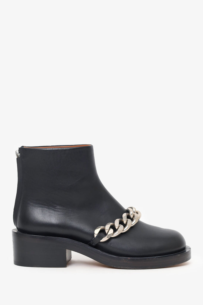 Givenchy Black Leather Laura Chain-trimmed Ankle Boots Size 36