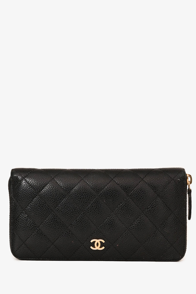 Pre-Loved Chanel™ 2014/15 Black Caviar Zip Around Long Wallet