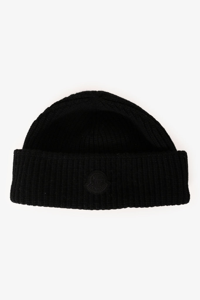 Moncler Black Wool Logo Beanie