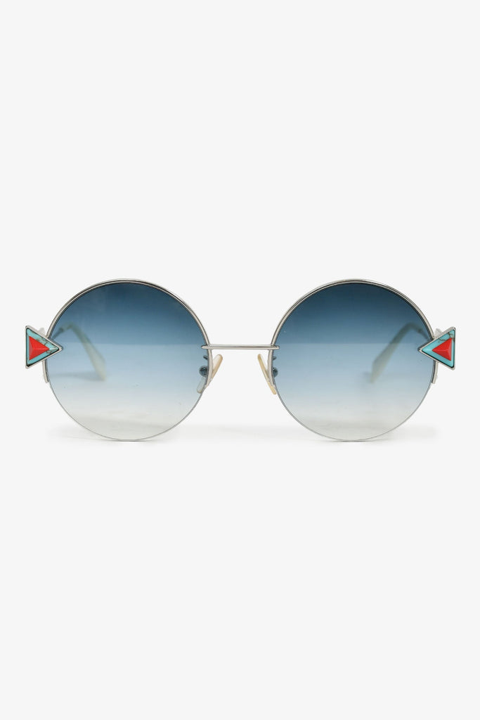 Fendi Silver Toned Blue/Red Embellishment Round Sunglasses