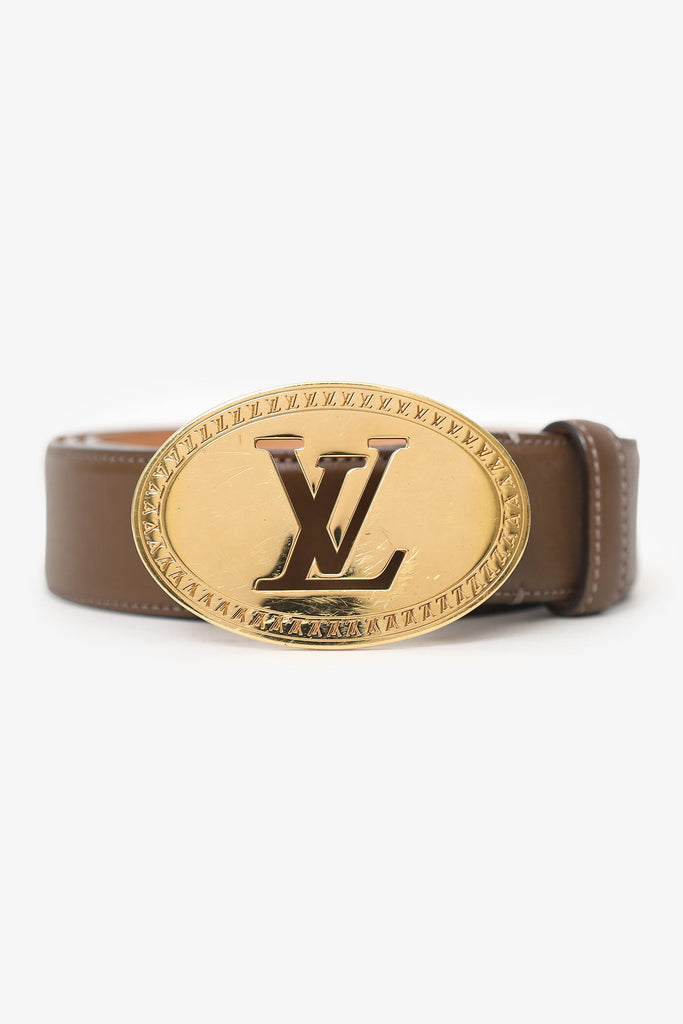 Louis Vuitton Taupe Leather/GHW 'LV' Buckle Belt Size 90